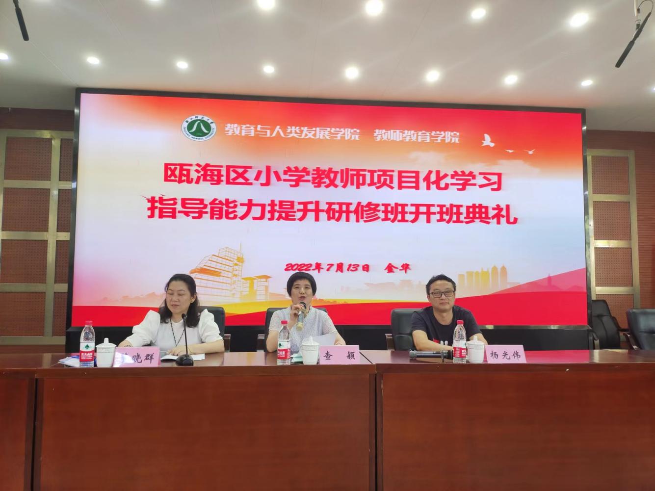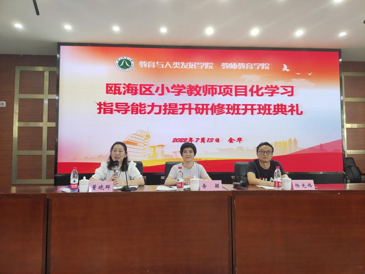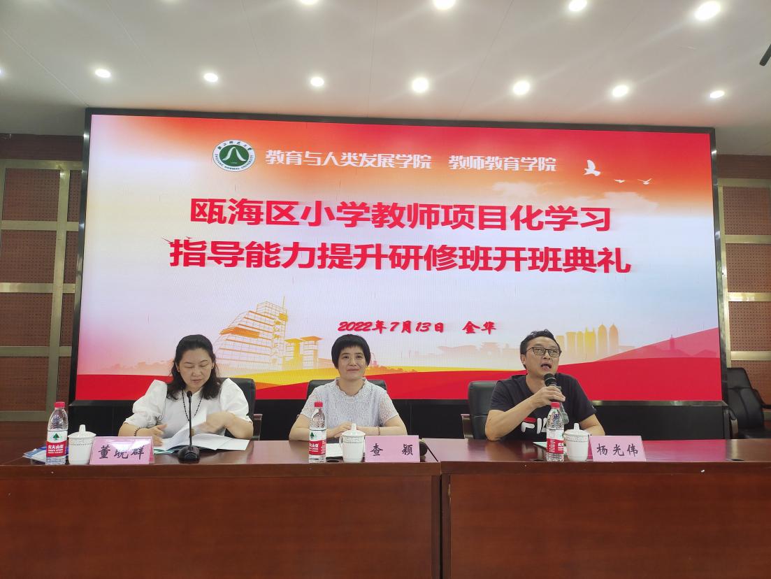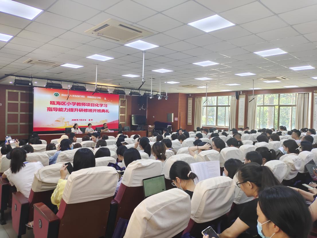 7月13日下午,浙江师范大学教师教育学院举办了瓯海区小学教师项目化学习指导能力提升研修班的开班典礼,浙江师范大学教育学院党委书记查颖致辞,瓯海区教师发展中心(教育研究院)副院长董晓群讲话。瓯海区230多名小学骨干教师参加培训。