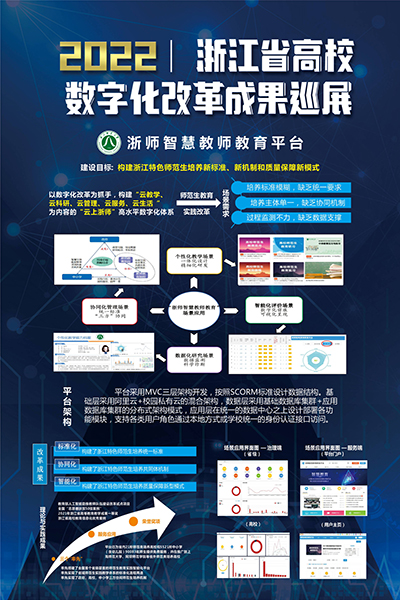 8月初,浙江省教育厅官方网站公布了2022浙江省高校数字化改革成果巡展作品,浙师智慧教师教育平台应用案例成功入选。