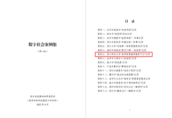 近日,浙江省发展改革委发文公布数字社会系统优秀案例集(第八批),浙师大智慧教师教育平台应用入选数字社会系统优秀案例集。本次案例集共收录了浙江省10个地市、2所高校的16个数字化改革应用案例,浙师大和浙大是首次入选数字社会系统优秀案例集的两所高校。