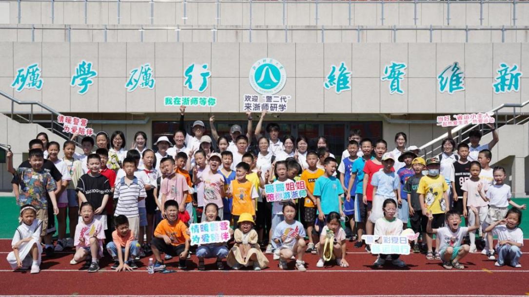 8日,实践队员邀请“警二代”小朋友们来到浙江师范大学,共同参与“‘警’彩校园,逐梦省运”研学活动,观赏师大美景,探索大学奥秘,在他们心中种下大学梦的种子。