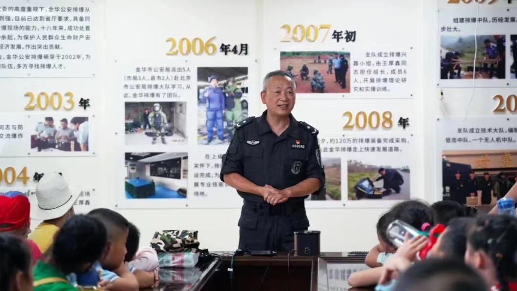 7日,特警支队实践队队员与小朋友们一同观看了特警叔叔的训练表演,接触到了十分逼真的模型枪,还听特警叔叔讲解了属于特警支队的荣耀。另外,二级英模排爆手王厚鑫爷爷也讲述了他的传奇故事。整个过程中,实践队队员和小朋友们都全神贯注,十分认真。