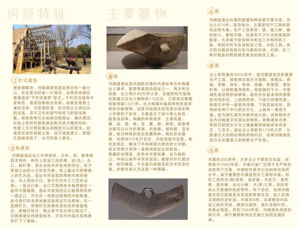 在实地考察挖掘河姆渡文化和问卷调研了解小学生劳动教育需求后,实践队成员们开始进行了针对小学低、中、高学段的课程开发。成员们用心制作了知识宣传手册,由点到面,力求把河姆渡历史讲活。队员们从稻季农时、匠器“慧聚”、巧构干栏三个角度开发特色课程,让学生们在感受河姆渡文化氛围的过程中,通过自身劳动实践体会河姆渡先民的劳动艰辛、劳动快乐与劳动智慧,在沉浸式劳动教育过程中逐渐热爱非遗文化,体会非遗文化的魅力。