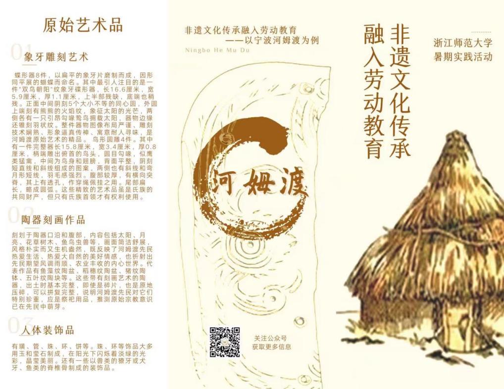 今年暑假,小教212班“河姆渡”实践队经过多日的调研活动,在深入考察河姆渡非物质遗产文化、调查当地劳动教育现状以及居民态度后,开发了非遗农韵特色劳动课程,并在宁波余姚当地进行试点,挖掘可被推广借鉴的教育经验,以期为中国传统非遗文化融入劳动教育建设提供新思路。