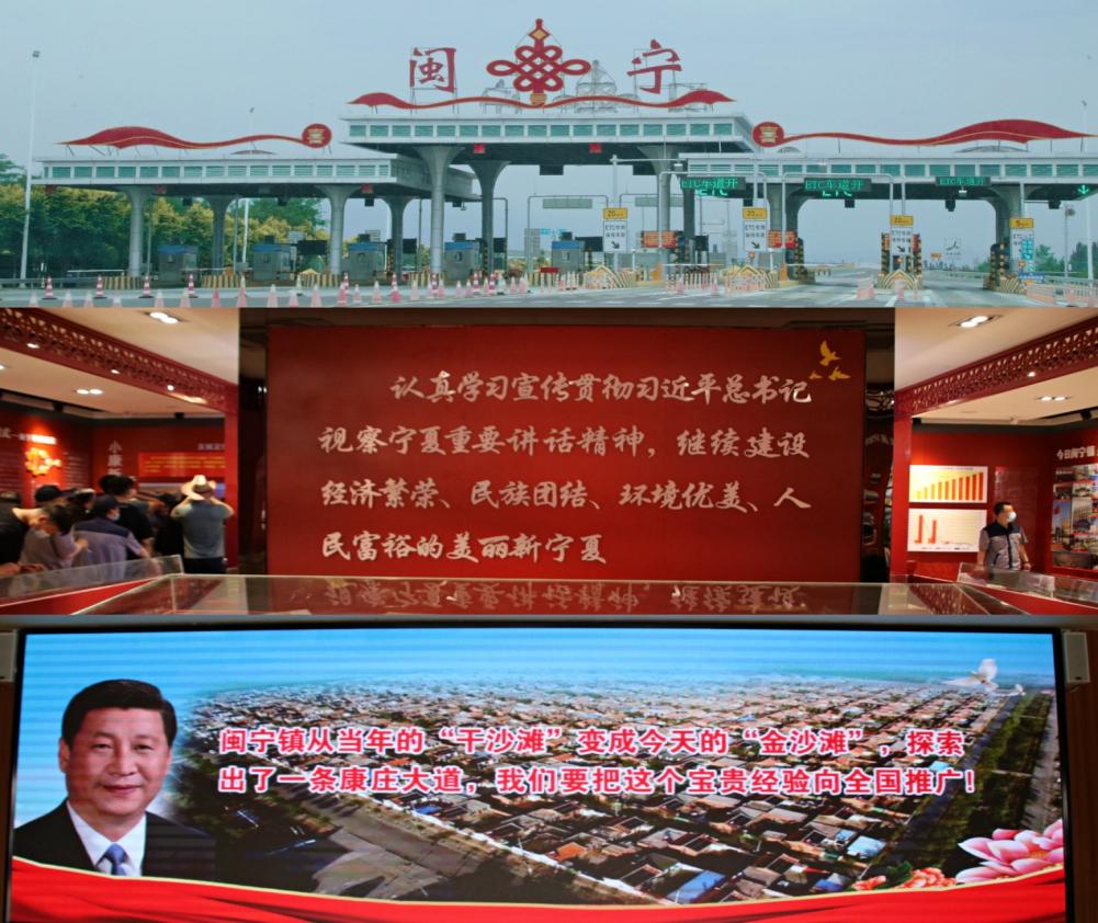 在镇史馆,实践队员们了解到,习总书记曾在1997年来到这里。他被这里当时的贫困状态所震撼,于是下定决心贯彻党中央决策部署,推动福建和宁夏开展对口帮扶。就在那时,重点实施了“移民吊庄”工程,让西海固的群众搬迁到适宜生产生活的地方,建起了闽宁镇。如今,闽宁协作已走过二十多年,居民的收入从当年的人均五百元增加到现在的一万多元,生活水平得到了质的飞跃。