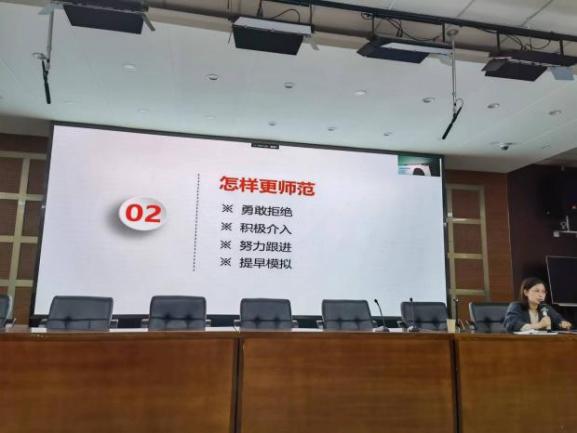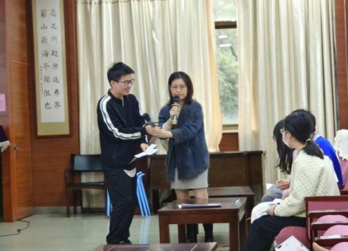 暖场活动结束后,王老师从一点感触、两点思考、三个因素和四方努力展开讲座。一点感触是源于招聘情况的感触;两点思考,其一是为什么是一个优秀的师范生在招聘时为什么会陷入困境,其二是怎样让自己成为一个有竞争力的师范生。针对为什么现在师范生不师范的问题,王老师认为有三点影响因素,包括课程设置缺陷,因为疫情的原因缺乏和一线教师的交流,信息技术的发展带来的思想限制。基于此王老师也给出了自己的见解,要勇敢拒绝、积极介入、努力跟进和提早模拟丰厚自己的师范资本。在讲座的最后,王老师让两名大三的同学在教学设计后进行了示范讲课,针对其中的问题进行了分析。王老师的讲座内容结合一线的教学案例,让学生切身感受到一线教学的魅力和挑战,内容生动有趣,受到师生的一致好评。