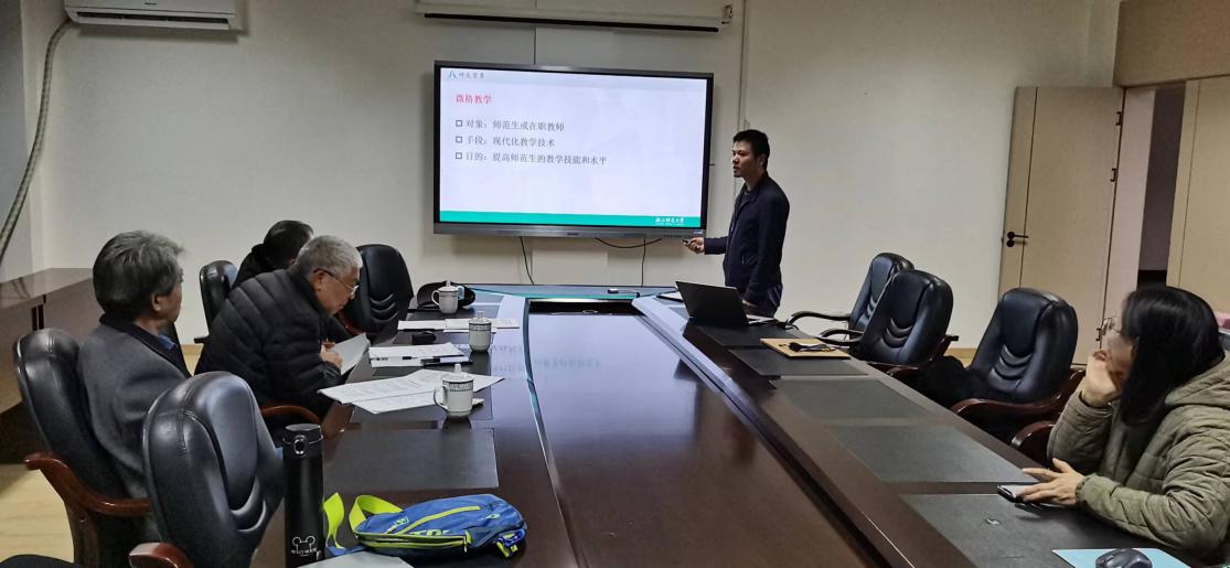 王锋青老师汇报了《学习进阶型微格教学实践研究》教学改革项目,划分了基础、高阶、综合训练难度逐层递增的教学阶段。专家们指出“进阶”具体指的是哪方面的进阶,可研究学生在微格教学时的教姿教态、语态语速、表情、逻辑等的进阶。