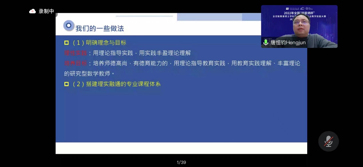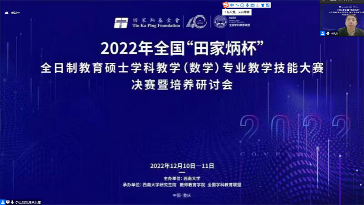 本次大赛由西南大学主办,西南大学研究生院、教师教育学院承办。共有来自全国95所高校的213名选手入围了决赛。决赛分14组、采用线上公开直播的形式进行模拟授课和在线答辩。最终依据各组评委给分,学科教学(数学)专家组集体评议后评出一等奖22人,二等奖48人,三等奖73人,优秀奖70人。