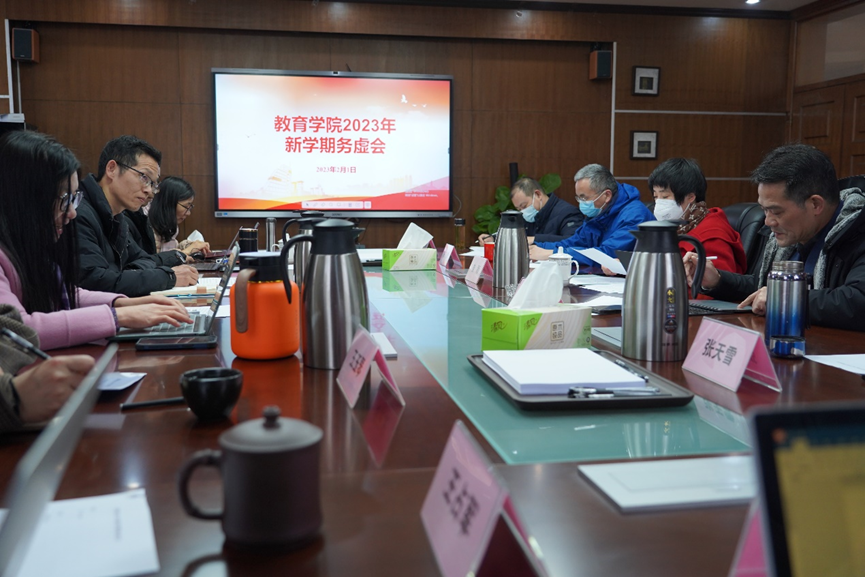 2023年2月1日上午,我院在17幢401会议室召开2023年新学期务虚会。学院党政领导班子成员、一级学科负责人、项目主管,科级干部、内设机构负责人,各教学系主任、支部书记,科研平台负责人参加会议,会议由学院党委书记俞明祥主持。