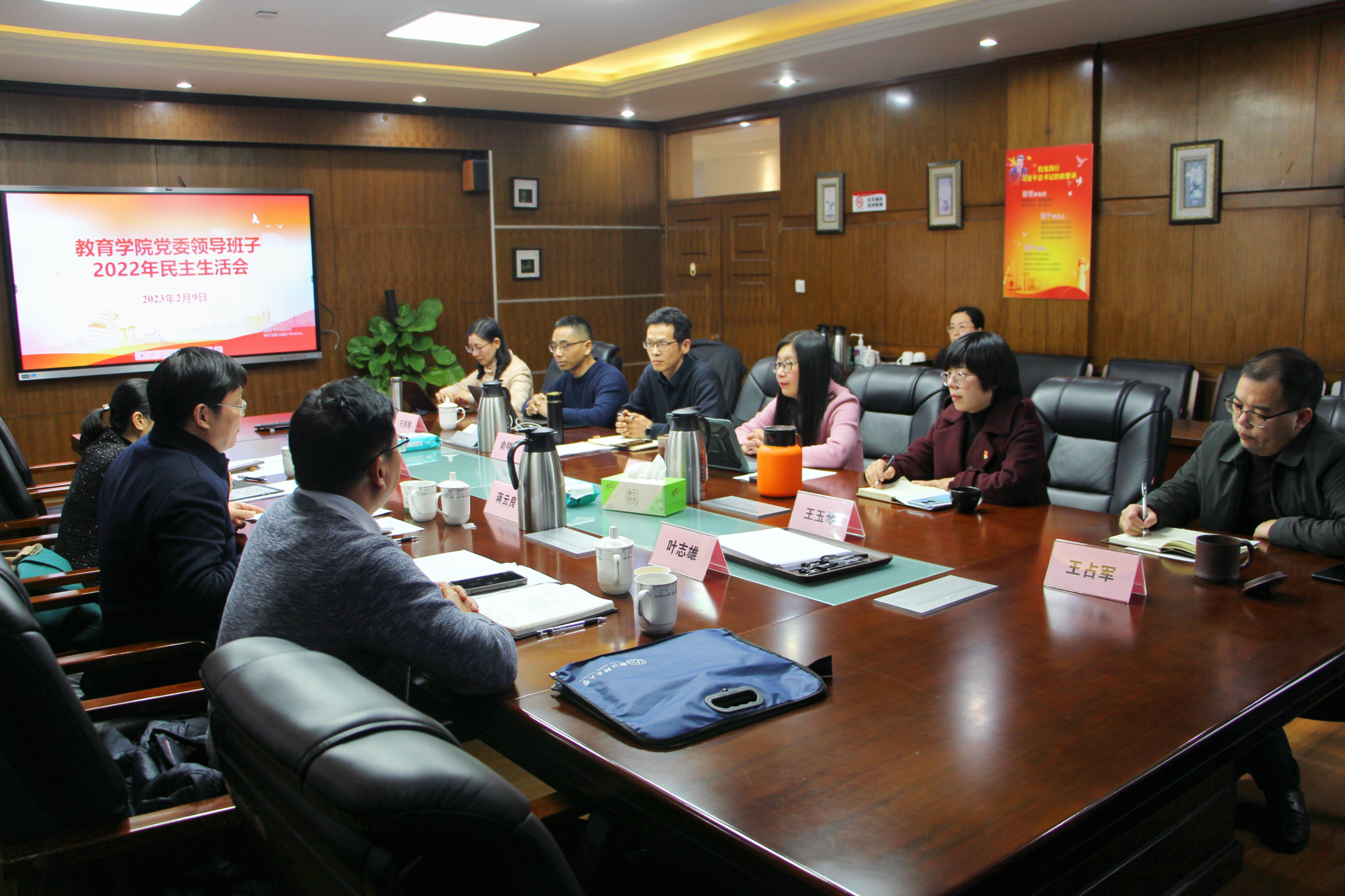 2月9日上午,教育学院党委班子2022年度民主生活会在17幢401会议室举行,校长蒋云良,校党委委员、组织部部长吕迎春,校纪委委员、工会常务副主席叶志雄莅临指导。会议由学院党委书记俞明祥主持,学院党委班子成员参加会议。