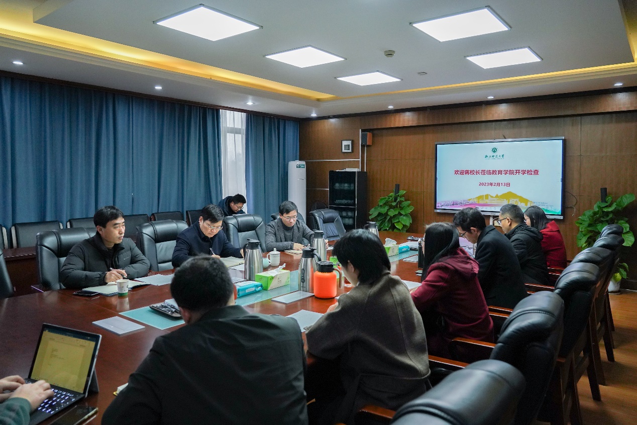2月13日上午,蒋云良校长在发规处处长王宪平、研究生院院长温建明陪同下,来我院调研、检查开学工作。学院院长黄晓、党委书记俞明祥等党政班子成员参加会议。