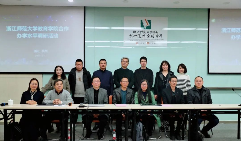 为了深入学习贯彻落实党的二十大精神,推进中国式教育现代化,建设高质量教育体系,提升合作办学水平,2月11日,浙江师范大学教育学院院长黄晓、党委书记俞明祥、合作办学项目主管陈法宝、青年博士邹逸老师一行专程赴杭州上城区进行合作办学调研。