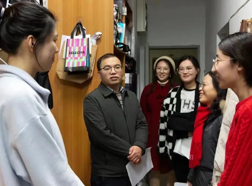 2月15日晚,教育学院党政领导班子成员和各科室老师分组深入学生公寓看望慰问学生,送去新学期的关心与问候。