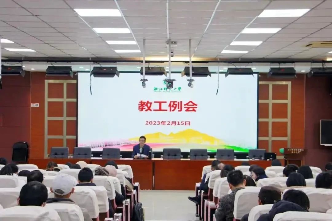 为吹响干事创业的集结号、冲锋号,紧密对接学校党委行政对于学院发展的殷切期待,2月15日下午,我院在17幢112报告厅召开了新学期第一次教工例会。全院教职工参加,会议由学院党委书记俞明祥主持。