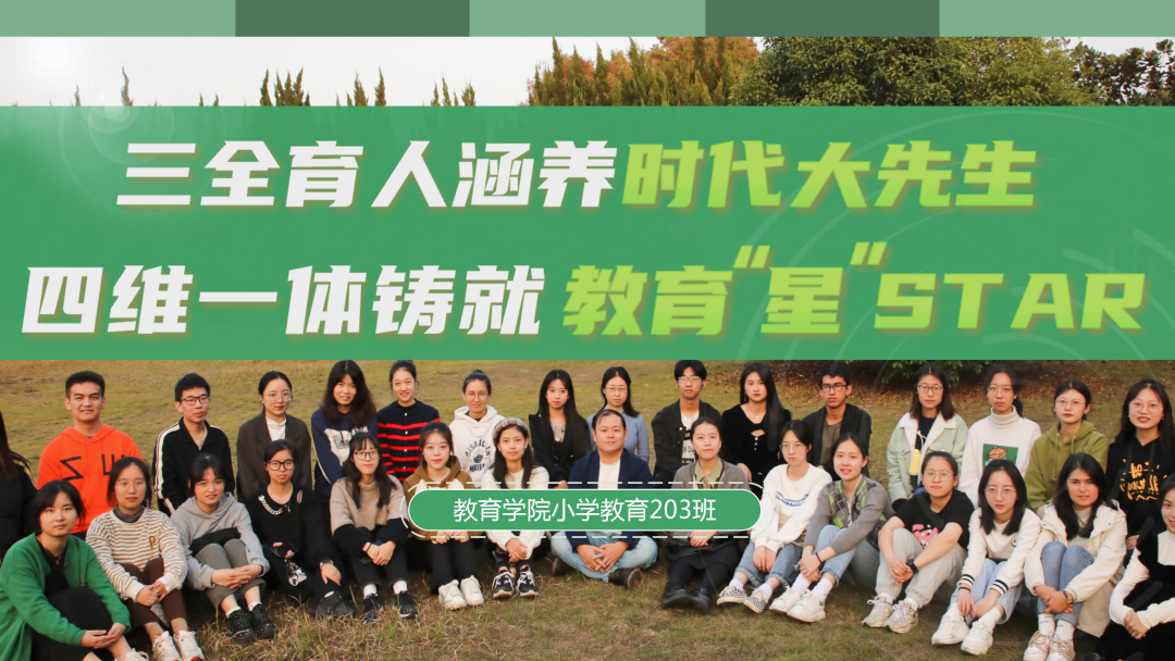 带着“不负浙师,不负青春,不负时代”的誓言,小学教育203班全体成员始终汇聚在一起,牢记“三全育人涵养时代大先生,四维一体铸就教育‘星’STAR”的理念,笃行致远,熠熠生辉,未来可期!
