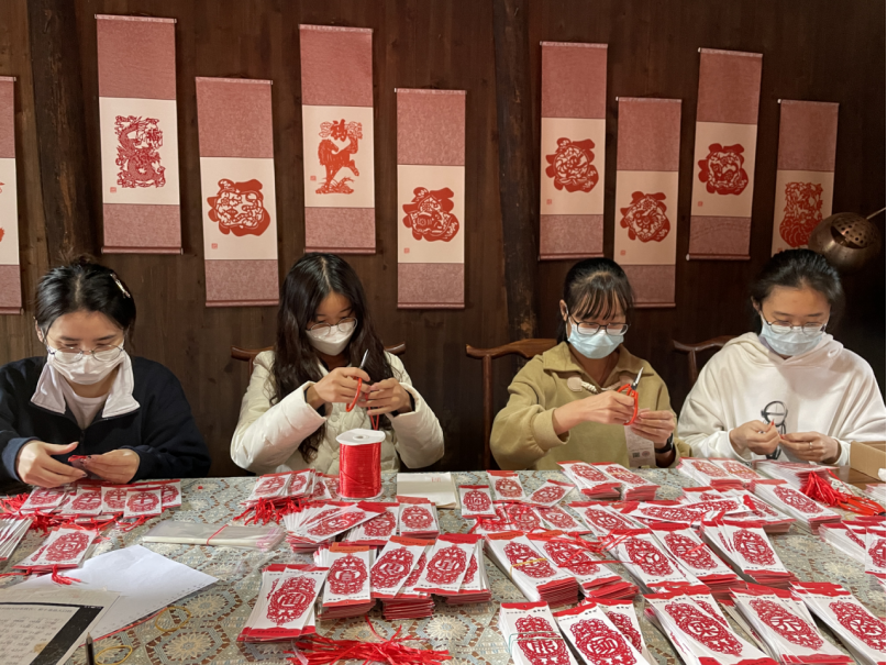 在金华市剪纸博物馆,同学们为前来参观的小朋友生动讲解金华剪纸的悠久历史、流派分类以及深厚文化底蕴,并通过一幅幅精美的剪纸作品让小朋友们感受剪纸文化所承载的自然之美、历史文化和人文气息。小朋友们在志愿者老师的指导下,仔细揣摩、反复练习,感受传统艺术的美妙,剪出了一幅幅作品。