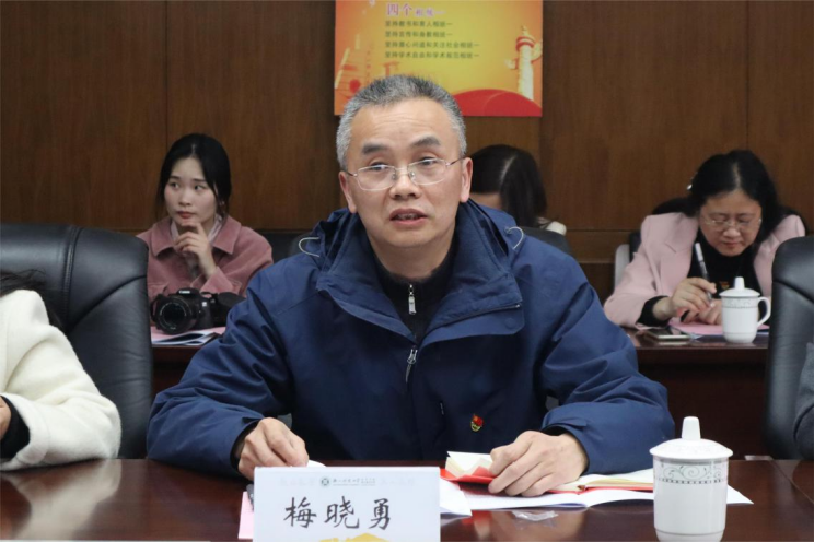 外国语学院党委书记项伟指出,教育学院、外语学院教师党支部携手共建党建与发展共同体,联袂画出事业高质量发展的同心圆,可以说恰逢其时、很有意义。通过组建横向多跨的党建与发展共同体,把促进学院内涵式发展、学科学位点建设等作为落脚点,不断激发党建工作活力,真正把党的政治优势、组织优势转化为学院的发展优势,大有可为、大有作为。项伟提出“五联五强”的意见:一是理论联学强党性。结合“三会一课”,定期召开联学会议,确定主题发言,聚焦某一理论问题或现实问题深入学习交流。二是队伍联育强引领。一月一主题,月月有交流,对标优秀榜样,引导支部党员业务能力不断提升。三是活动联办强凝聚。建立“共享主题党日”轮办机制,联动开展“我为师生办实事”活动,引导党员强化服务意识、争创党员先锋。四是品牌联创强特色。坚持特色驱动,以品牌思维抓党建,通过教育、外院的党支部强强联合,突出展现党建工作的教育味、外语味、数字味。五是发展联手强内涵。以上述系列活动推动支部党员在学术方面取得长足进步,带动系部老师共同发展,最终实现双向奔赴,形成促进学院事业发展的强大合力。