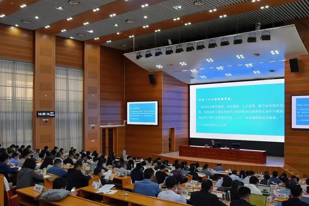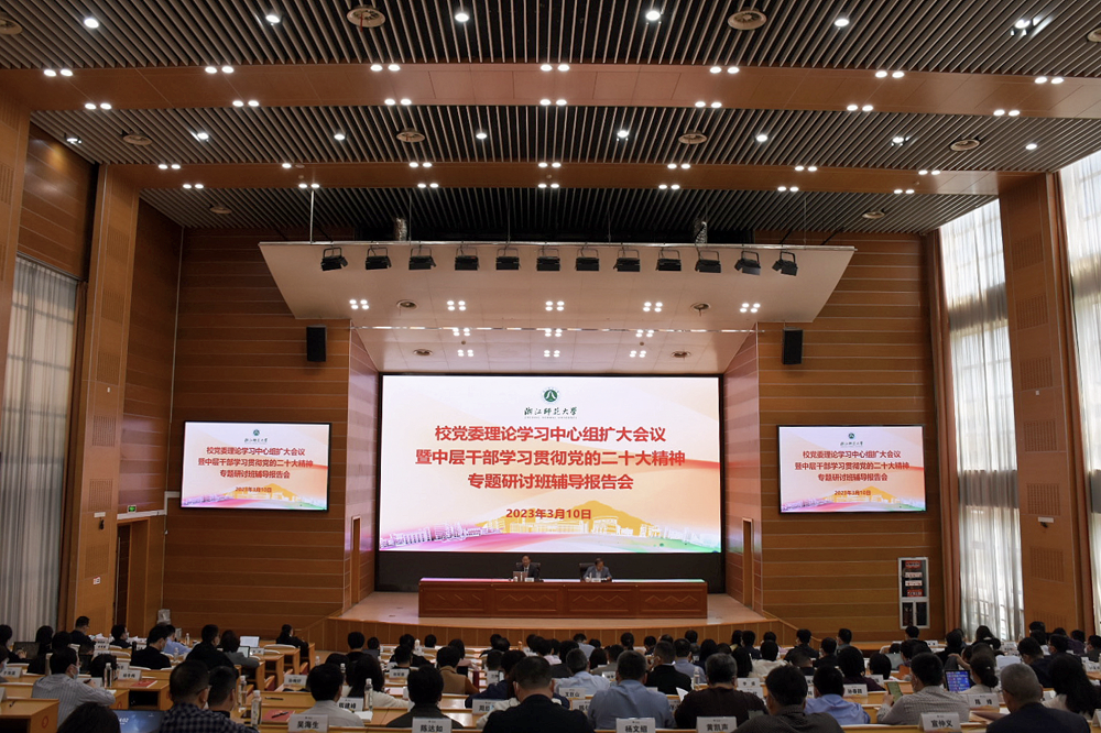 2023年3月10日下午,浙江师范大学田家炳德育研究中心主任、教育学科首席专家、中国教育学会副会长袁振国教授应邀为浙江师范大学中层干部学习贯彻党的二十大精神专题研讨班作了题为《教育、科技、人才三位一体的战略意义与我们的使命》的报告,报告由浙师大党委副书记邵国平主持,浙师大党委委员、组织部、统战部部长吕迎春以及全体中层干部聆听了本次报告。