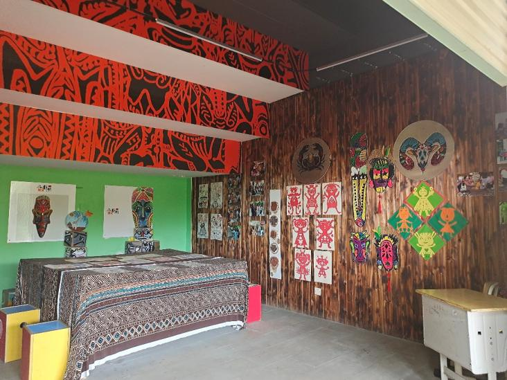 上午八点半,见习生们在校领导的带领下参观了校园。他们走过活力非洲园中异域风情浓厚的长廊,参观和体验了七个极富特色的活动小屋——“神秘非洲看一看”“鼓乐非洲敲一敲”“视觉非洲画一画”“指尖非洲剪一剪”“多彩非洲穿一穿”“友谊非洲写一写”“气质非洲编一编”,切实感受了秋滨小学以非洲园为特色,以非洲文化为校本课程核心,以促进中非团结友好为目的校园特色文化。