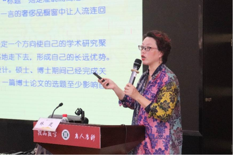 林岚主任的讲座共包含四个方面,分别为:“明确的问题意识”“适切的理论框架”“恰当的研究方法”和“有逻辑的严谨的学术表达”。
