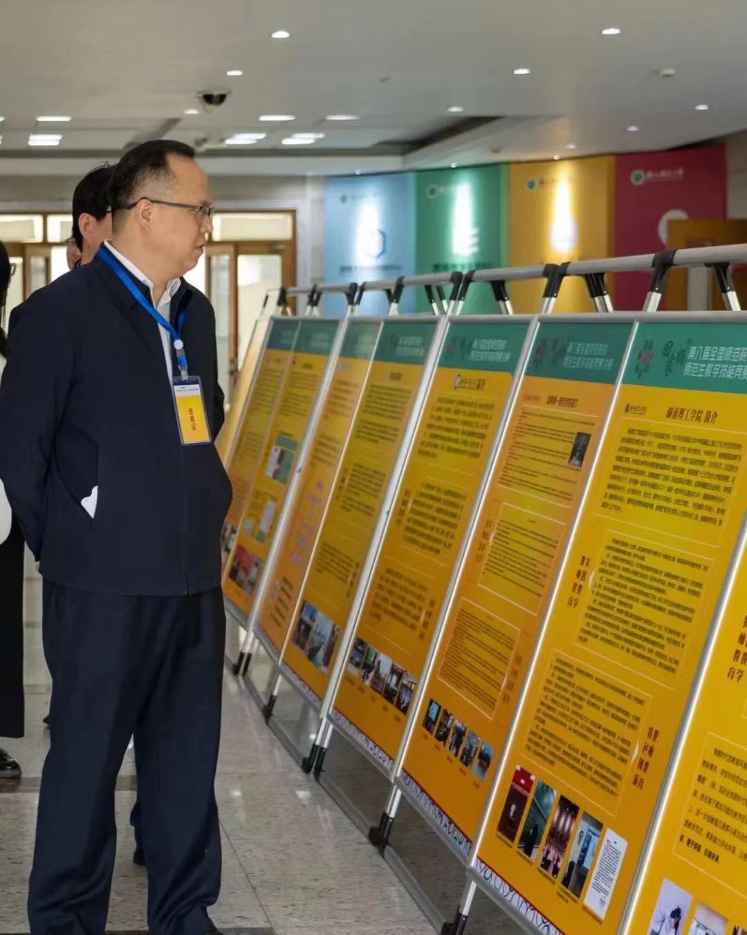 为了更好地让指导教师与参赛选手学习,大赛设置了观摩场地,非洲赛道的观摩场地在6幢,国内赛道的观摩场地设在16幢教学楼。为了更好地实现师范院校之间关于师范生实践教学经验的交流,本次国赛还征集到了50余所高校的经验,在大赛观摩教室入口处设置展板,吸引了众多前来观摩的老师。