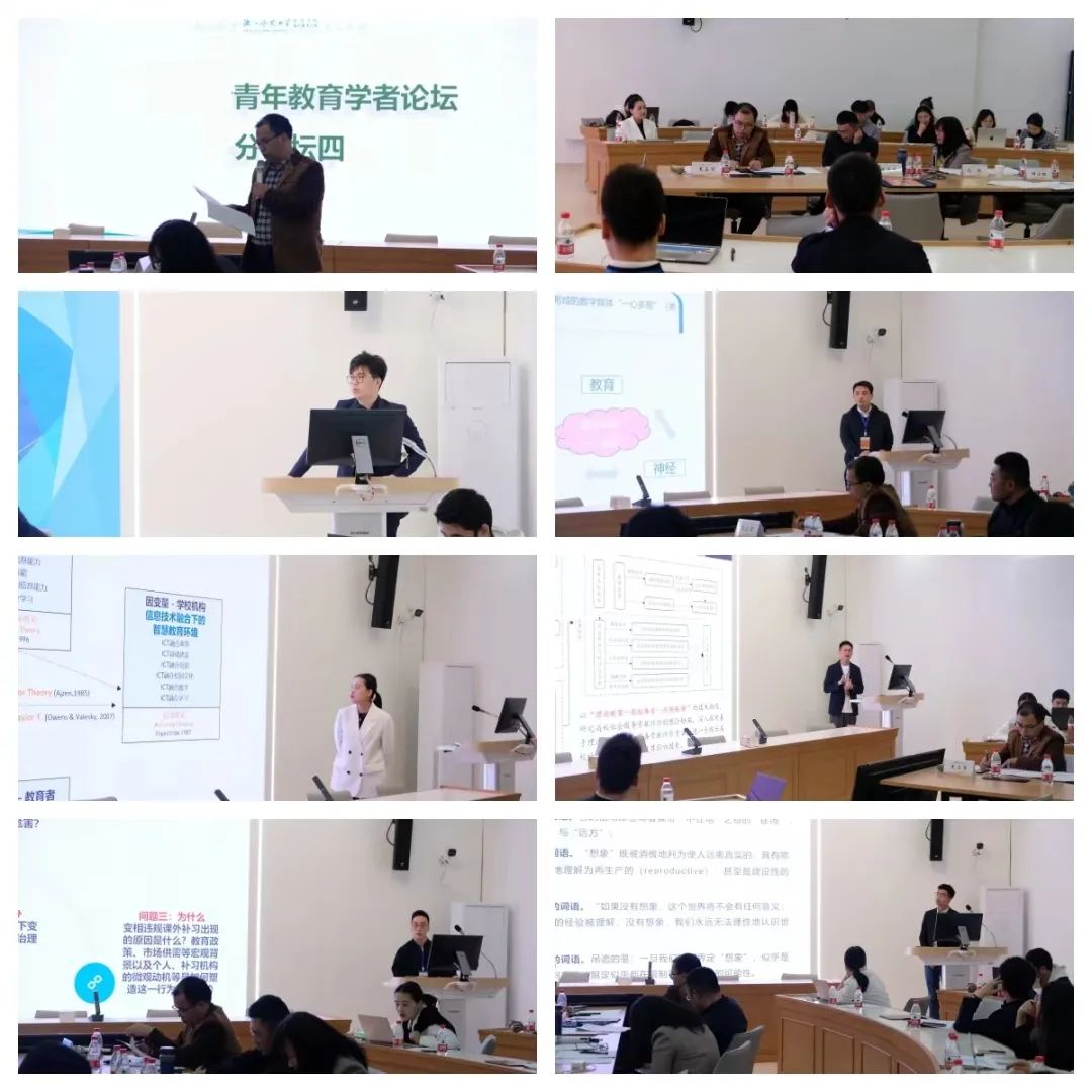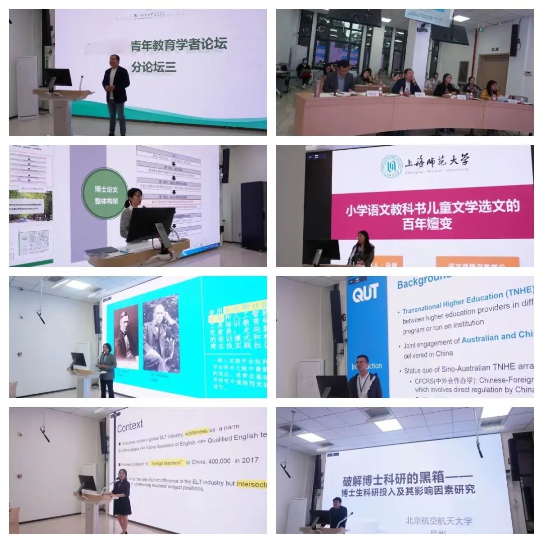 香港大学罗九同、莫斯科罗蒙诺索夫国立大学汪玄、马来亚大学张毓婷、华东师范大学马银琦、华东师范大学潘士美、华东师范大学李政林等六位博士依次以《理解数字媒体“一心多用”对青少年的影响》《俄罗斯爱国主义教育》《信息化时代背景下高校智慧教育环境构建路径研究》《高校社会服务贡献评价的探索性研究》《“双减”政策背景下变相违规课外补习问题研究》和《教学想象:不确定性视域下教师教学方式的变革》为题进行了分享。