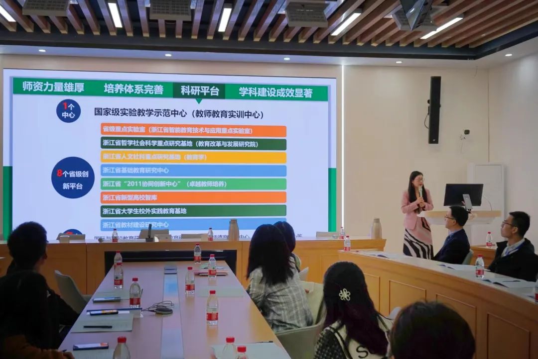 刘洋教授介绍了论坛背景、学校概况和教育学科实力,分享了学校近期在人才引育方面的主要措施和五大优势;他指出教育学院的“未来英才”计划是学校引才工作的亮点,并期待各位英才加盟浙师。