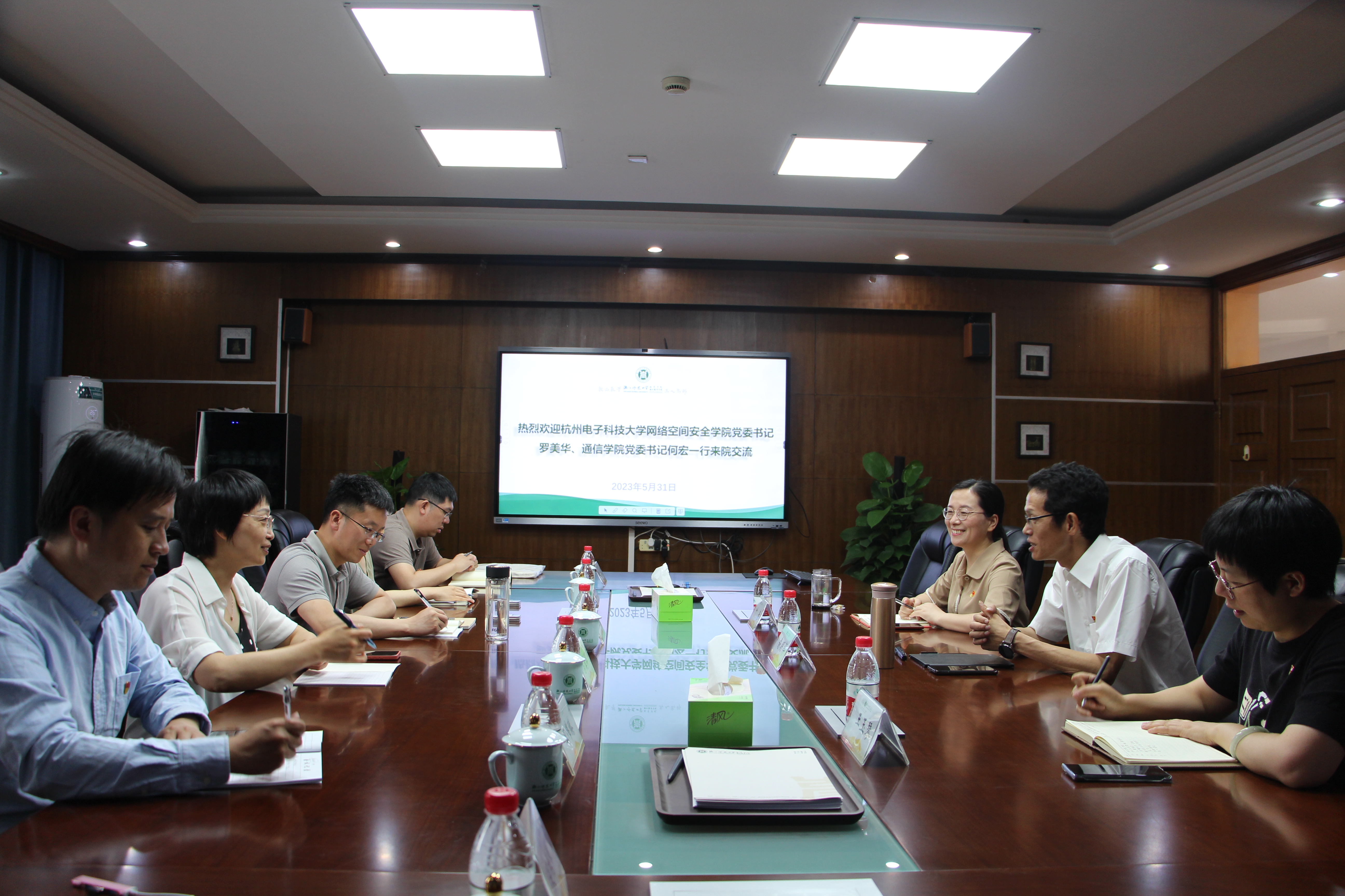5月31日上午,杭州电子科技大学网络空间安全学院党委书记罗美华、通信工程学院党委书记何宏一行6人来我院就双方党建工作、主题教育开展情况进行交流。