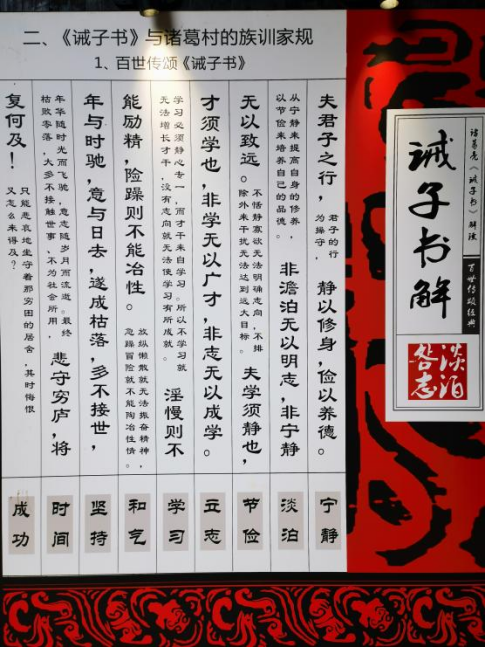作为全国诸葛亮后裔最大聚居地,一千多年来,诸葛八卦村以留传后世的《诫子书》为祖训,秉承先祖忠于国家,公于用人,勤于职守,廉于律己的遗风,教育和激励着一代又一代后世子孙。1996年,被国务院列为全国重点文物保护单位,先后被评为国家AAAA级旅游景区、中国十大古村、国家非物质文化遗产保护地、省廉政文化教育基地、青少年乡土文化教育基地等。近年来,诸葛村以诸葛廉政教育基地为载体,积极传承和宣扬清廉文化,以党风清正、作风清新、村务清爽、干部清廉为目标,积极开展清廉村居建设。