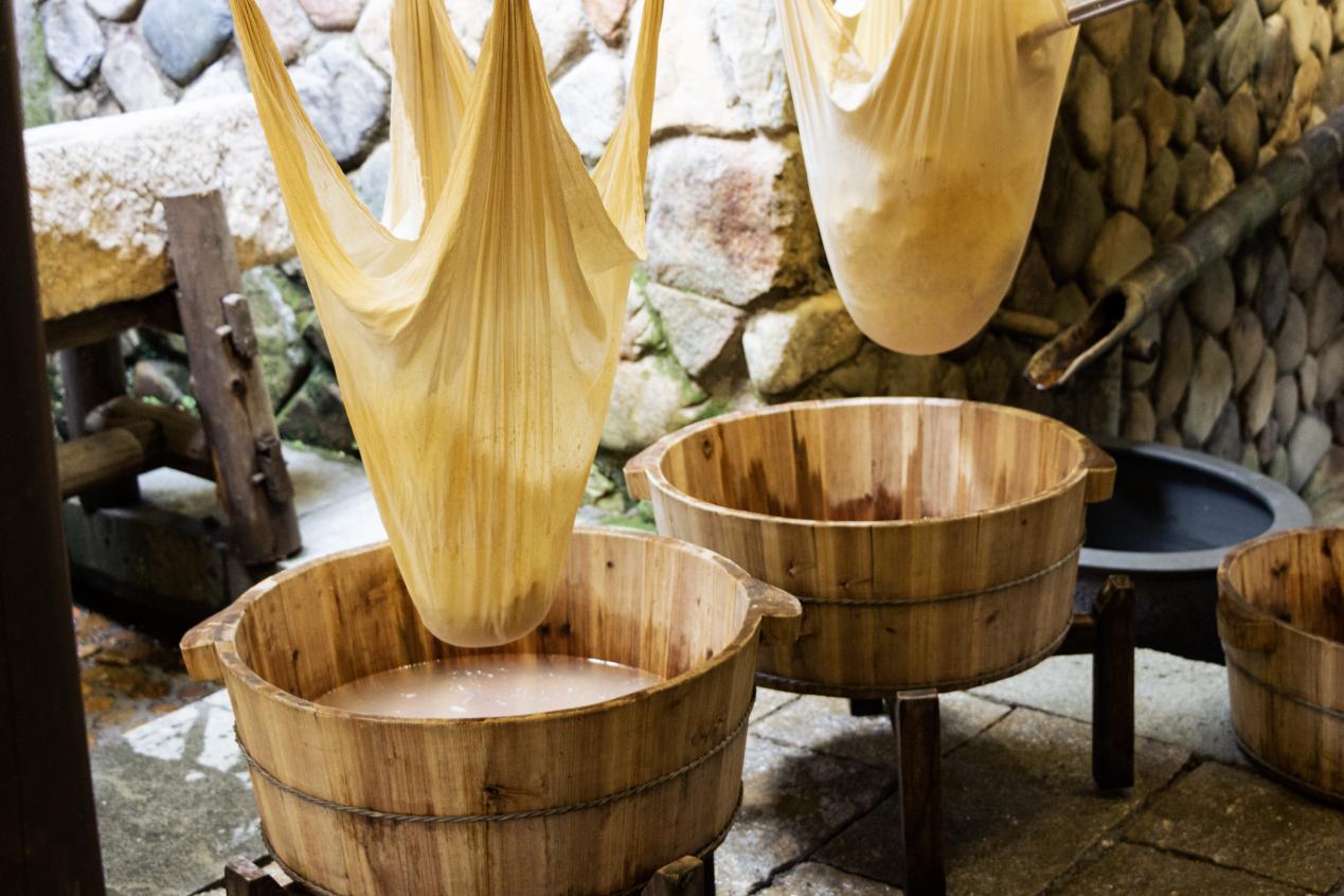 在豆腐共富工坊中,实践队了解了廿八都传统豆腐的制作工艺,于唇舌间感受豆制品的细腻清甜;在隆兴钱庄中,成员们见证了钱币的进化过渡历史;在中美联手抗日纪念馆中,江山民众自发营救美国飞行员的朴实故事激发了大家的爱国热情。