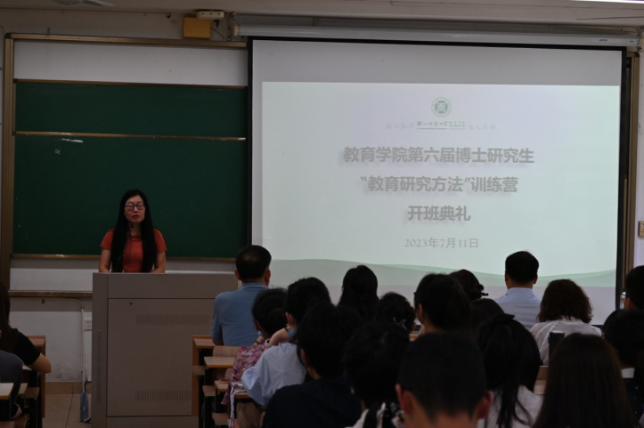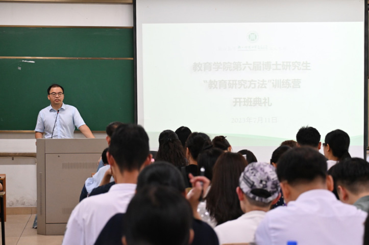 7月11日上午,教育学院第六届博士研究生“教育研究方法论专项训练”如期开营,教育学院院长黄晓、教育学院副院长王占军出席开班典礼,导师代表李润洲教授、研究生办公室工作人员及2023级博士新生参加典礼,开班典礼由王占军教授主持。