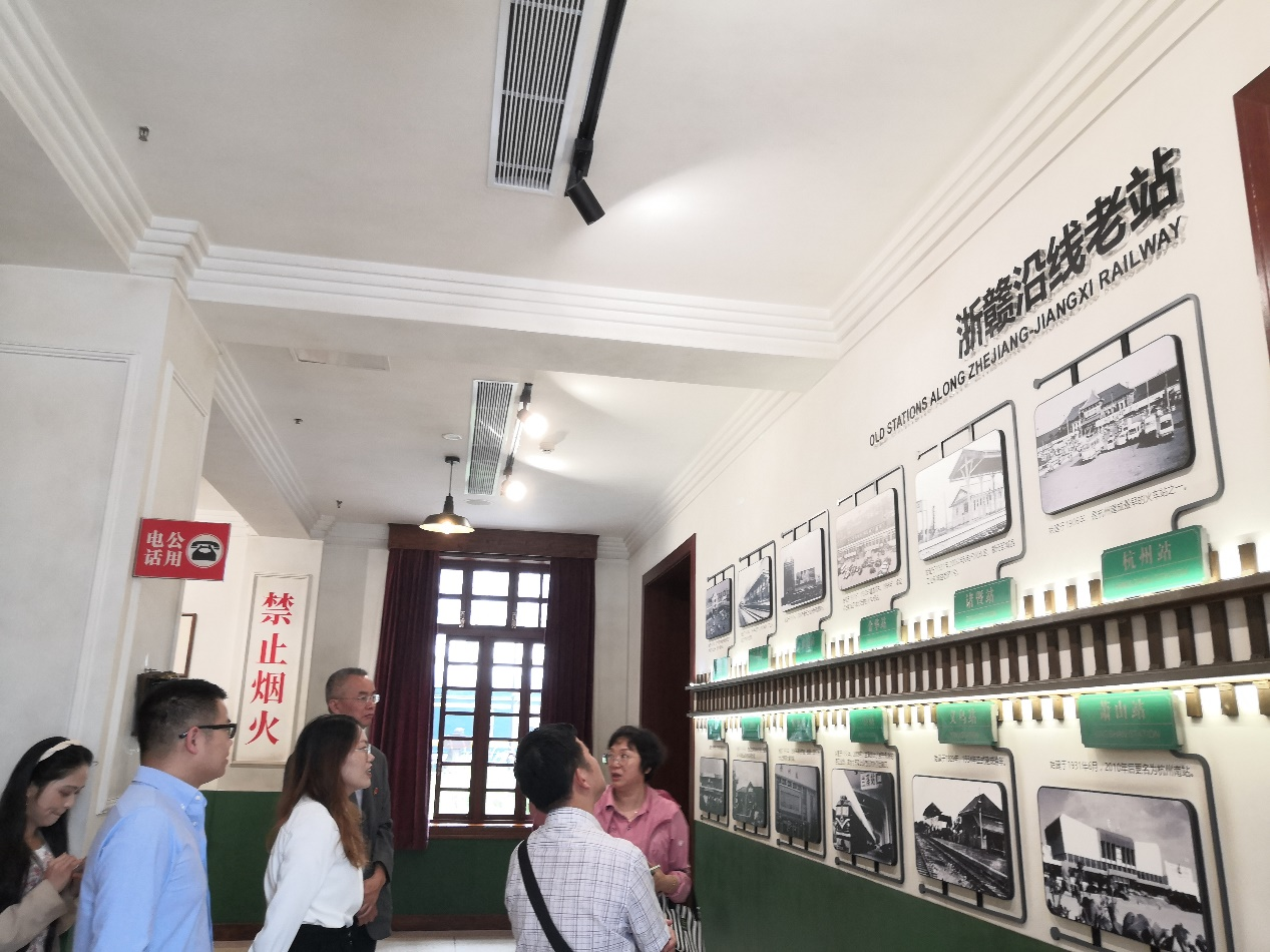 在支部党员李鸣华老师的讲解下,支部党员参观了金华铁路发展历史,深入了解了连年战争时期的艰难起步阶段、快速发展阶段、“八纵八横”大发展阶段以及“一带一路”走出去战略阶段。