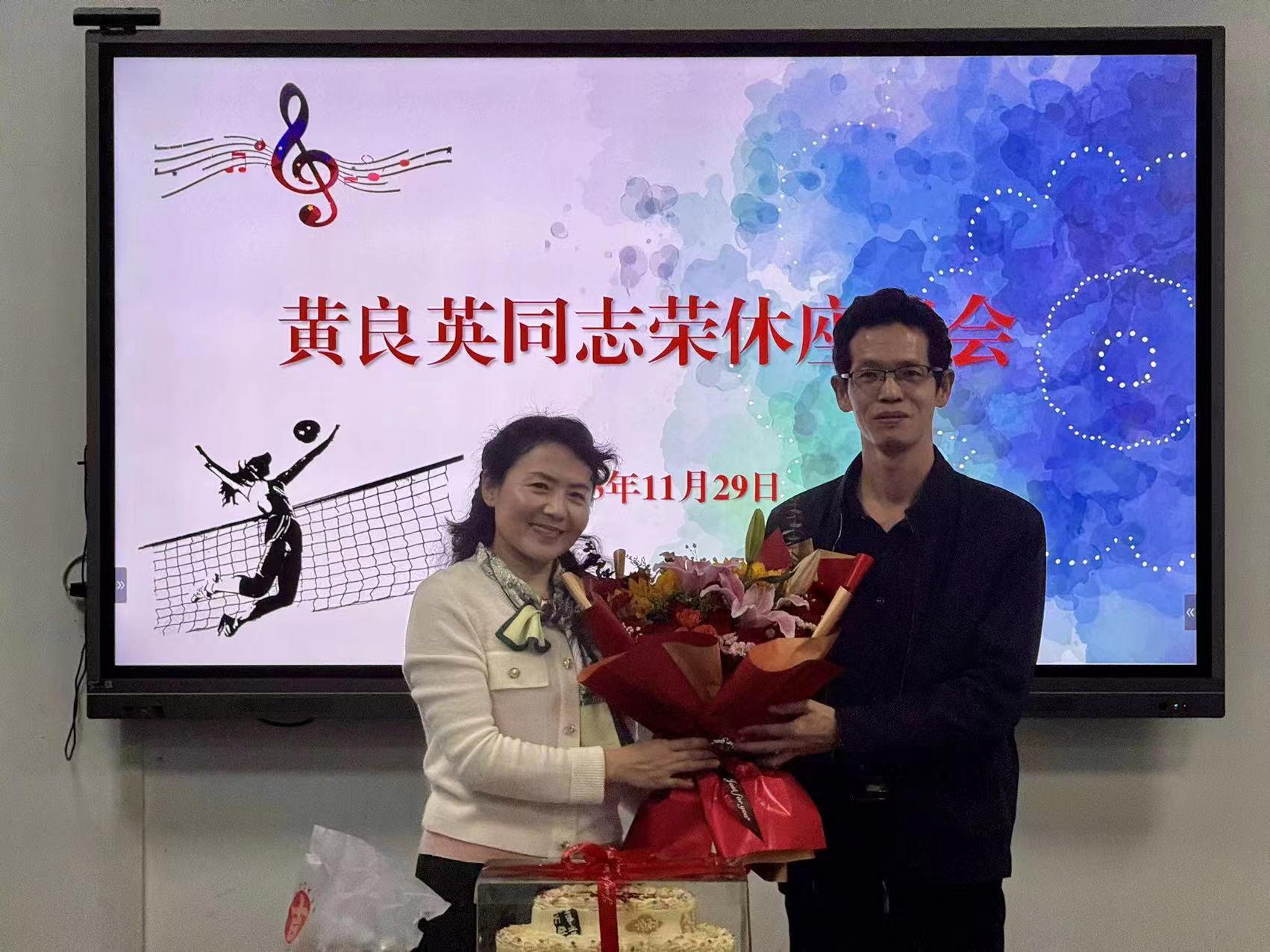 最后,俞明祥用“一片丹心、两袖清风、三尺讲台、四季晴雨、五颜六色、七窍玲珑、八仙神通、久(九)久为功、十分用心”高度肯定了黄良英对学院的贡献和工作期间的业绩。俞明祥表示,黄良英在工作中践行为民服务孺子牛、创新发展拓荒牛、艰苦奋斗老黄牛精神,展现了工作的激情、热情、真情,也绽露了工作的速度、力度、尺度,把有意思的事情做得有意义,把有意义的事情做得更有意思。
