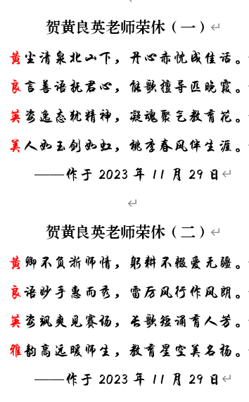 俞明祥为祝贺黄良英光荣退休赋诗两首。