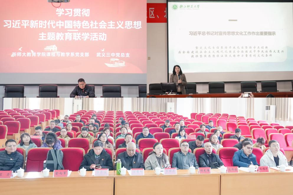 1日上午,党员教师们来到武义三中,与武义三中党总支成员围绕学习贯彻习近平文化思想开展联学,支部副书记俞向军领学。新时代新征程,宣传思想文化工作面临新形势新任务,围绕在新的历史起点上继续推动文化繁荣、建设文化强国、建设中华民族现代文明这一新的文化使命,我们要坚定文化自信,秉持开放包容,坚持守正创新。双方党员教师就如何结合专业,实现课堂教学育人和厚植文化自信进行了热烈讨论。