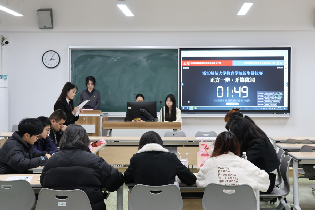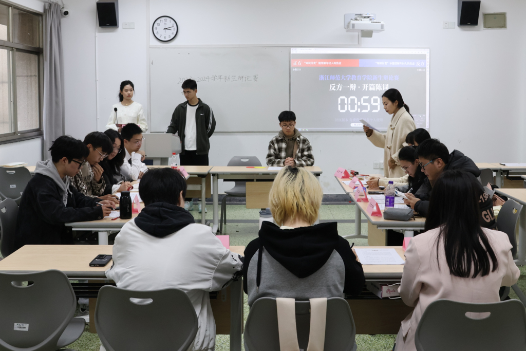 辩论的意义不在于争锋,而在于编织逻辑与创意。3月18日,教育学院2023级新生辩论赛初赛正式开始。教育学院辩论队副队长张思敏、院辩论队成员刘昱伶等担任评委,2023级新生分三场展开辩论。传统的观点固然根生蒂固,新颖的论述却总能直击人心,正反双方热情洋溢,比赛气氛如火如荼。下面,让我们一起进入比赛现场,共同体会同学们的巧言雄风。