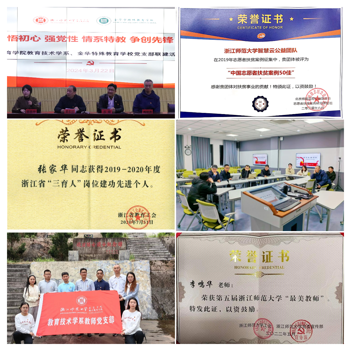 支部先后荣获省高校党建“双创”工作样板支部、国家级教学团队等多项荣誉称号。支部党员获得省“三育人”岗位建功先进个人、省教学名师等多项表彰。指导教育技术学硕士研究生党支部入选全国高校“百个研究生样板党支部”。