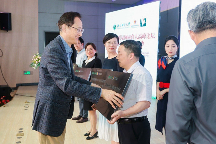 2024年5月14日,浙江师范大学田家炳德育研究中心(以下简称“中心”)参与协办新时代高质量协同育人高峰论坛暨内生德育学术活动。中心主任袁振国教授、常务副主任查颖教授、办公室主任彭年强、秘书何丹宁参与本次活动,活动在浙江师范大学附属杭州笕文实验学校举行。北京师范大学教授边玉芳,浙江省教育科学研究院院长朱永祥,《中国德育》副主编、编审刘洁,浙江省家庭教育指导中心副主任赵云丽,浙江教育报正高级编审言宏,杭州市上城区委常委毛素云,杭州市教育局德体卫艺处副处长梁树波,上城区教育局党委书记、局长项海刚,副局长王世美等相关专家、领导以及来自上城区各中小学校长、中心17所基地校校长、家长代表等三百余人参加本次活动。