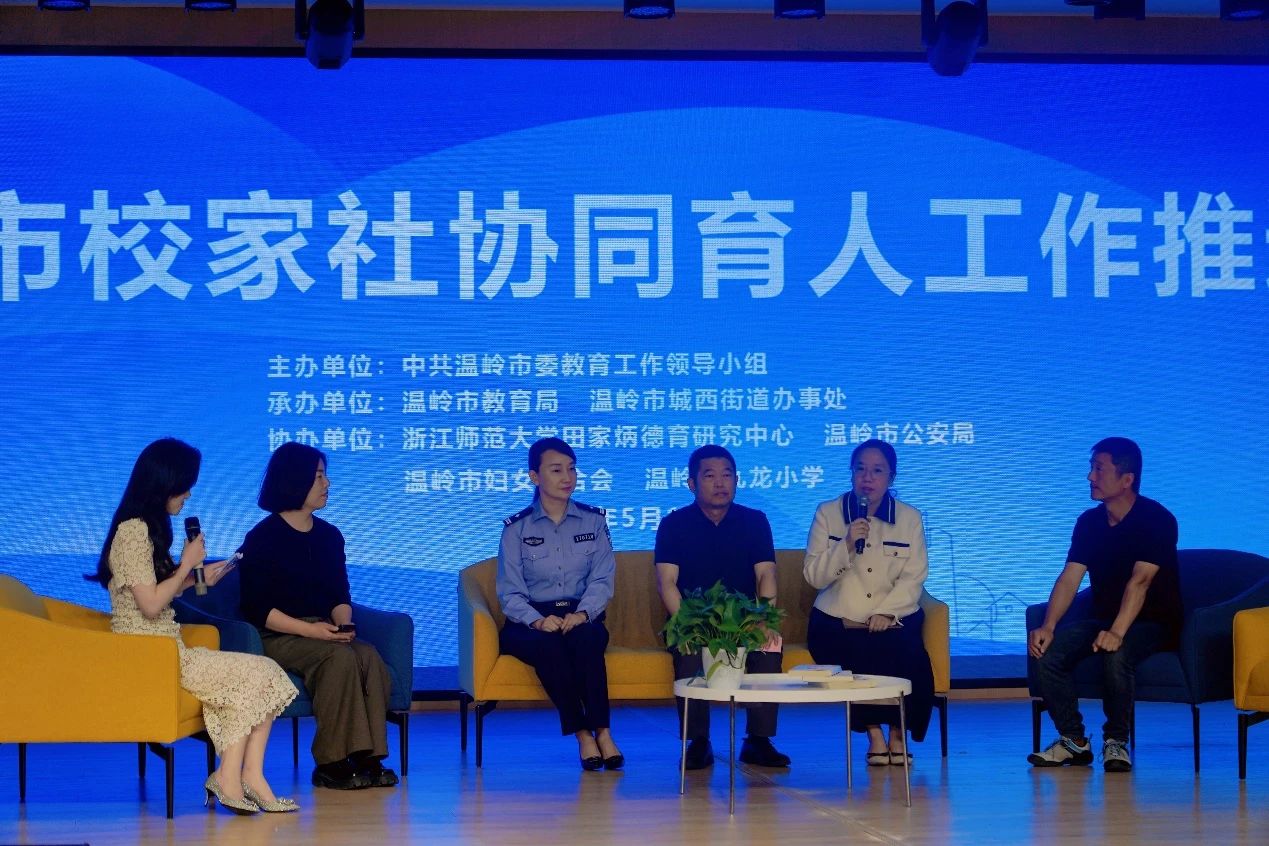 会上,来自市妇联、市公安局、城西街道、示范校等单位的代表、温岭市第一届金牌家长代表共同参与主题沙龙,互相交流如何构建“校家社”协同育人新生态。