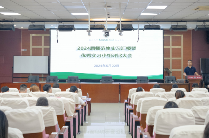 2024年5月22日下午,教育学院2024届师范生实习汇报暨优秀实习小组评比大会于17幢112报告厅举行。学院副院长王良辉,教育学系周晓燕、项建英,教育技术学系王小明等老师担任评委。出席大会的还有实习指导老师郑逸农、刘迎春、杜华、龚伟以及教务办黄璐,年级辅导员冯奕程。2021级全体师范生到场观摩学习。