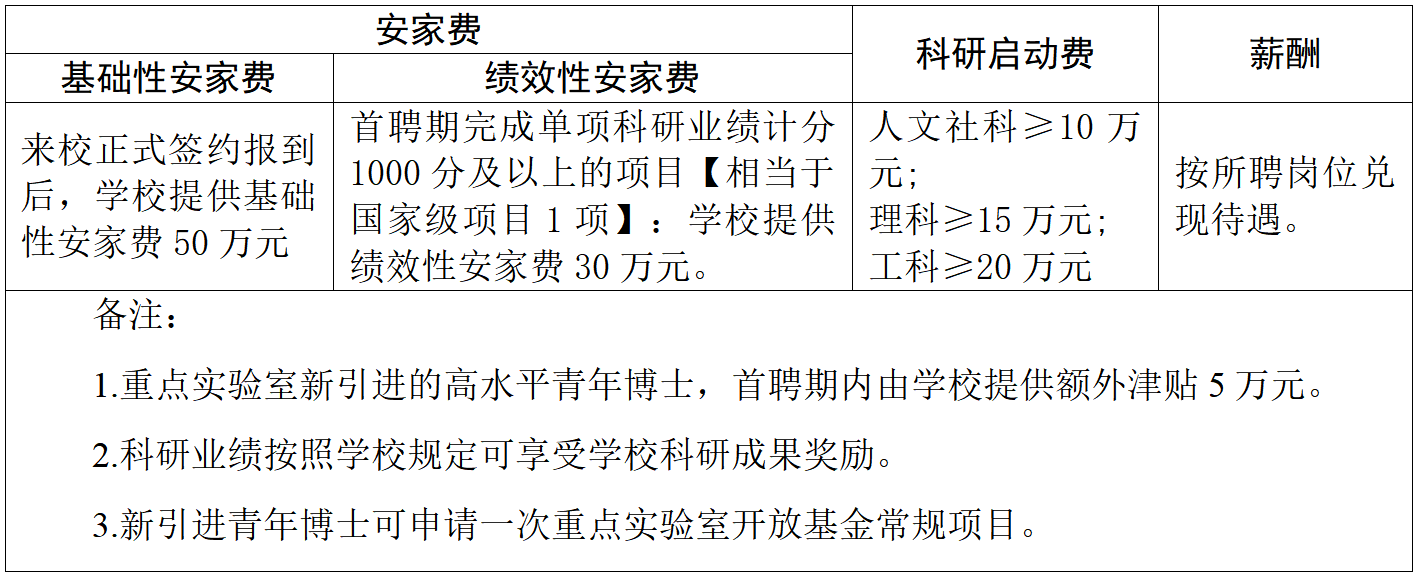 特别说明:引进人才的具体政策与学校人事处保持同步,并由学校人事处负责解释。