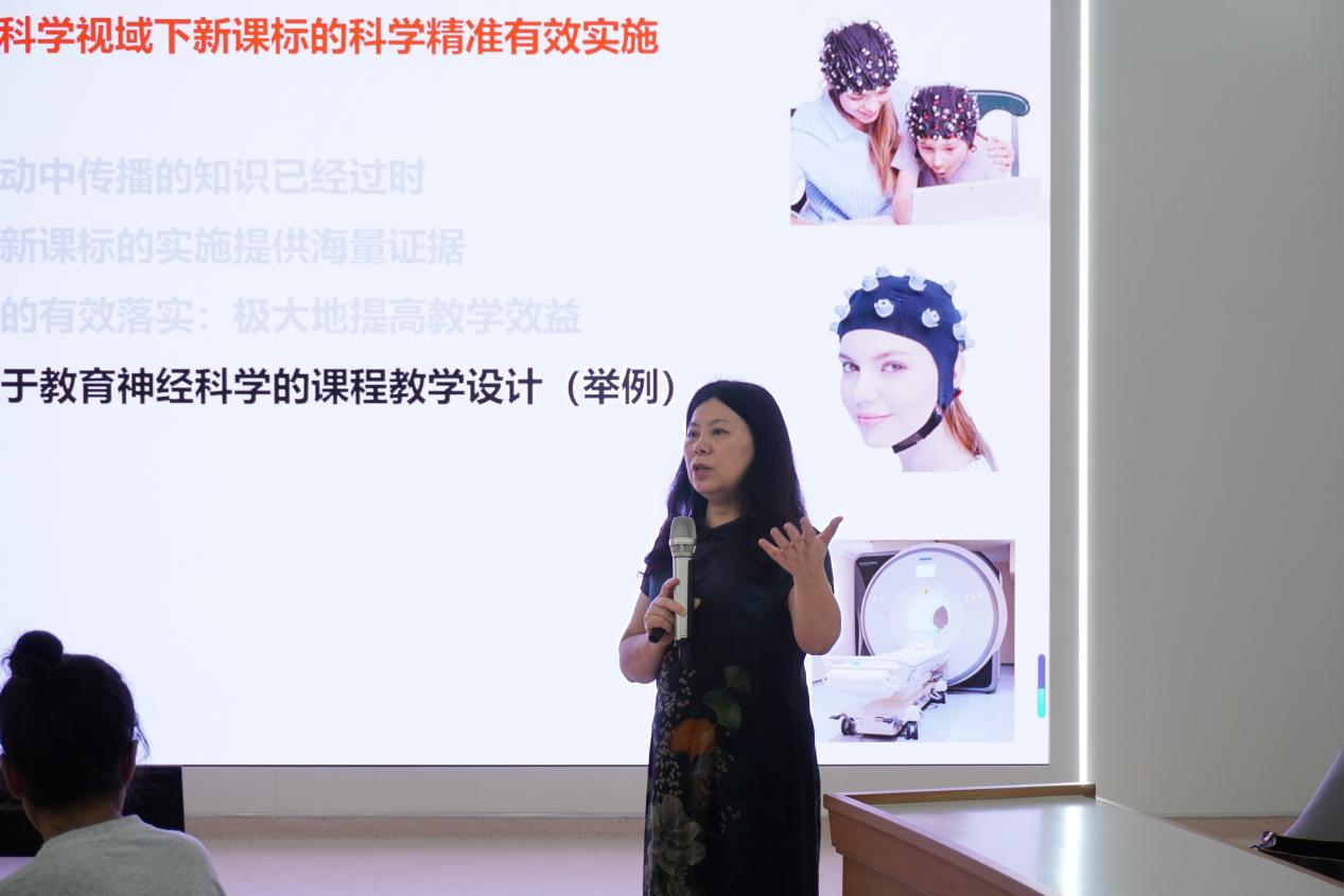 讲座中,周加仙结合大量科学研究成果,讲述教育神经科学与人的关系。她提倡根据脑科学的研究成果来进行基于新课标的课程设计、教学设计与作业设计,打造科学合理高效的课堂教学。在教育神经科学与新课标的教育理念结合下,通过精准的启发、示范、引导,以教育神经科学的神经元点燃学生学习的热情,定会提升学生各学科的学习效率,进而提升整体的教育水平。教育神经科学必将为教育带来翻天覆地的变化。