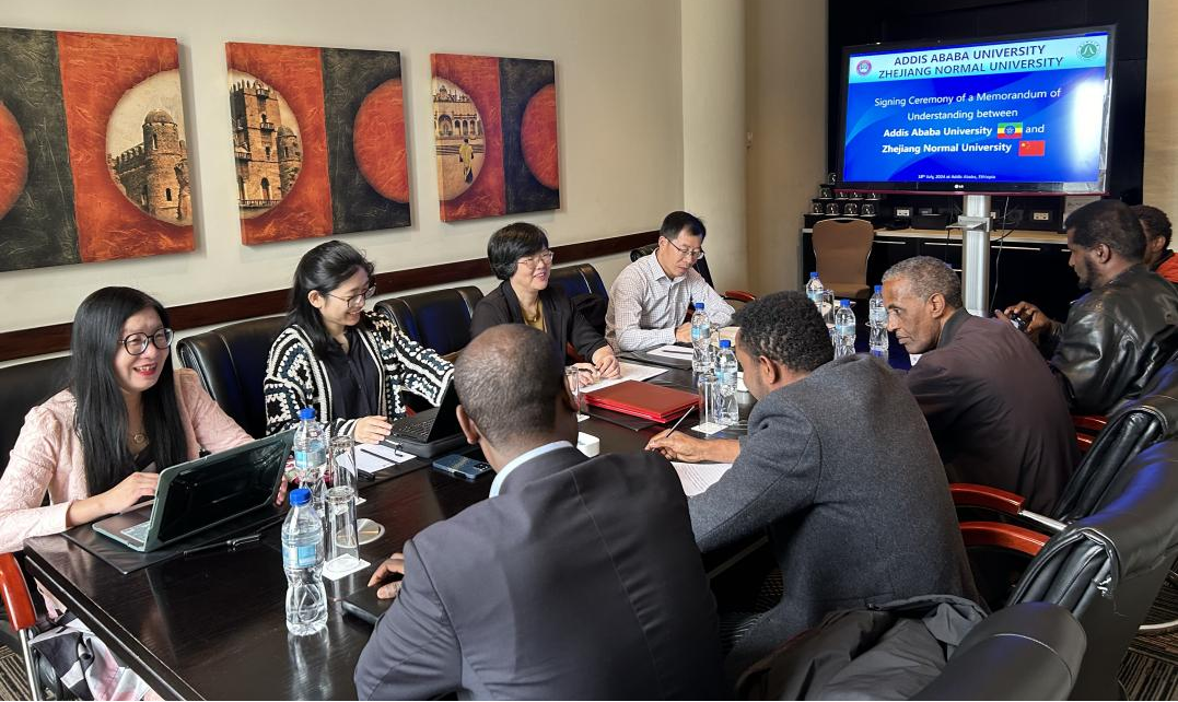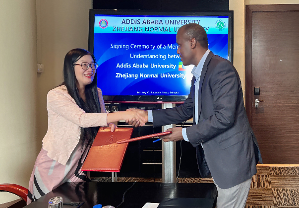 7月18日上午,浙江师范大学教育学院院长黄晓带队到访亚的斯亚贝巴,与亚的斯亚贝巴大学教育与行为研究学院院长耶科亚莱姆·德西(Yekoyealem Dessie)就教师教育、科学教育和数字教育等方面的能力提升正式签署合作协议。亚的斯亚贝巴大学教师教育与领导力卓越中心主任德杰内·尼古塞(Dejene Niguse)、教育与行为研究学院副院长阿卜杜拉齐兹·侯赛因(Abdulaziz Hussien)、副院长塞尤姆·内梅(Seyoum Neme)、副院长达维特·梅孔嫩(Dawit Mekonnen),浙江师范大学教育学院代表参加了签约仪式。