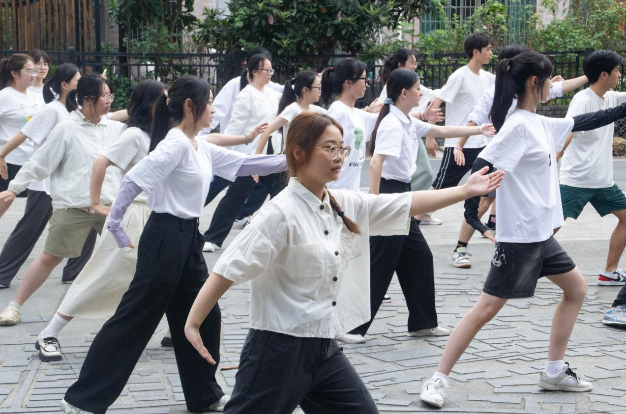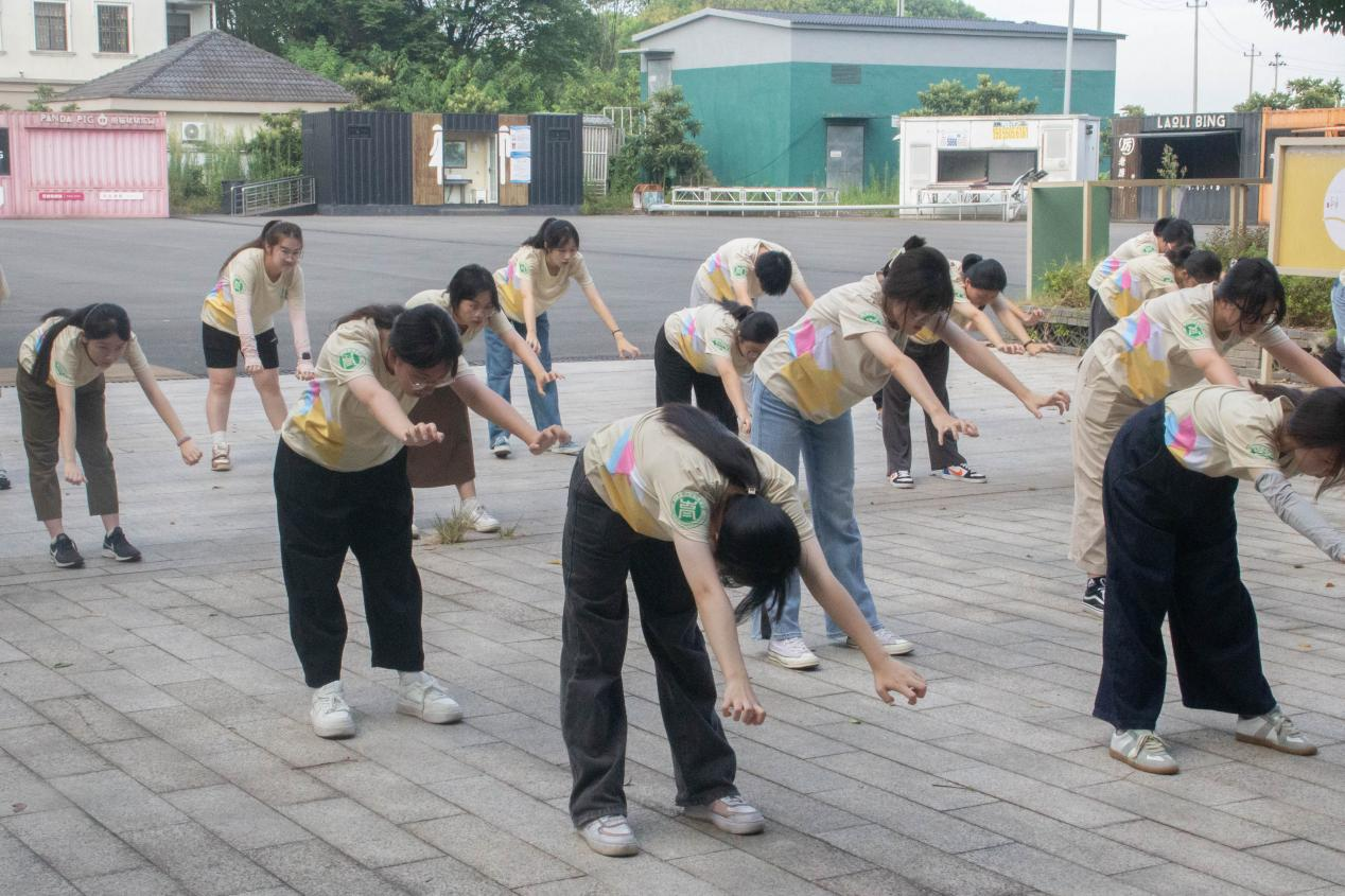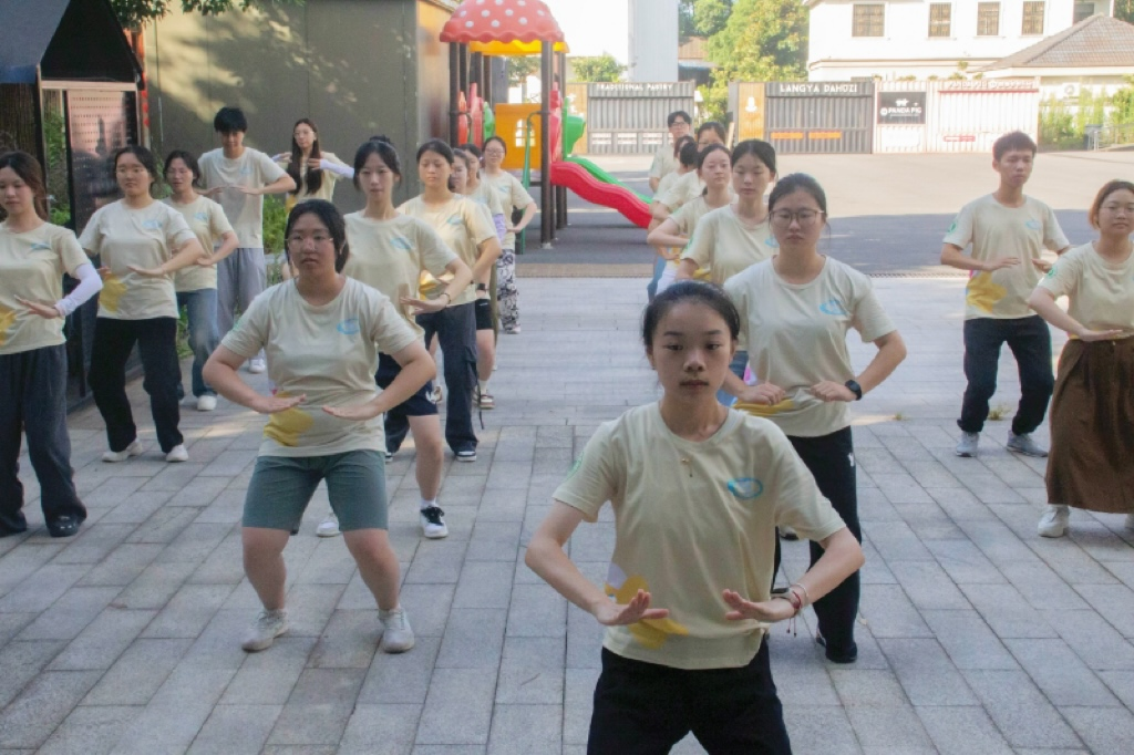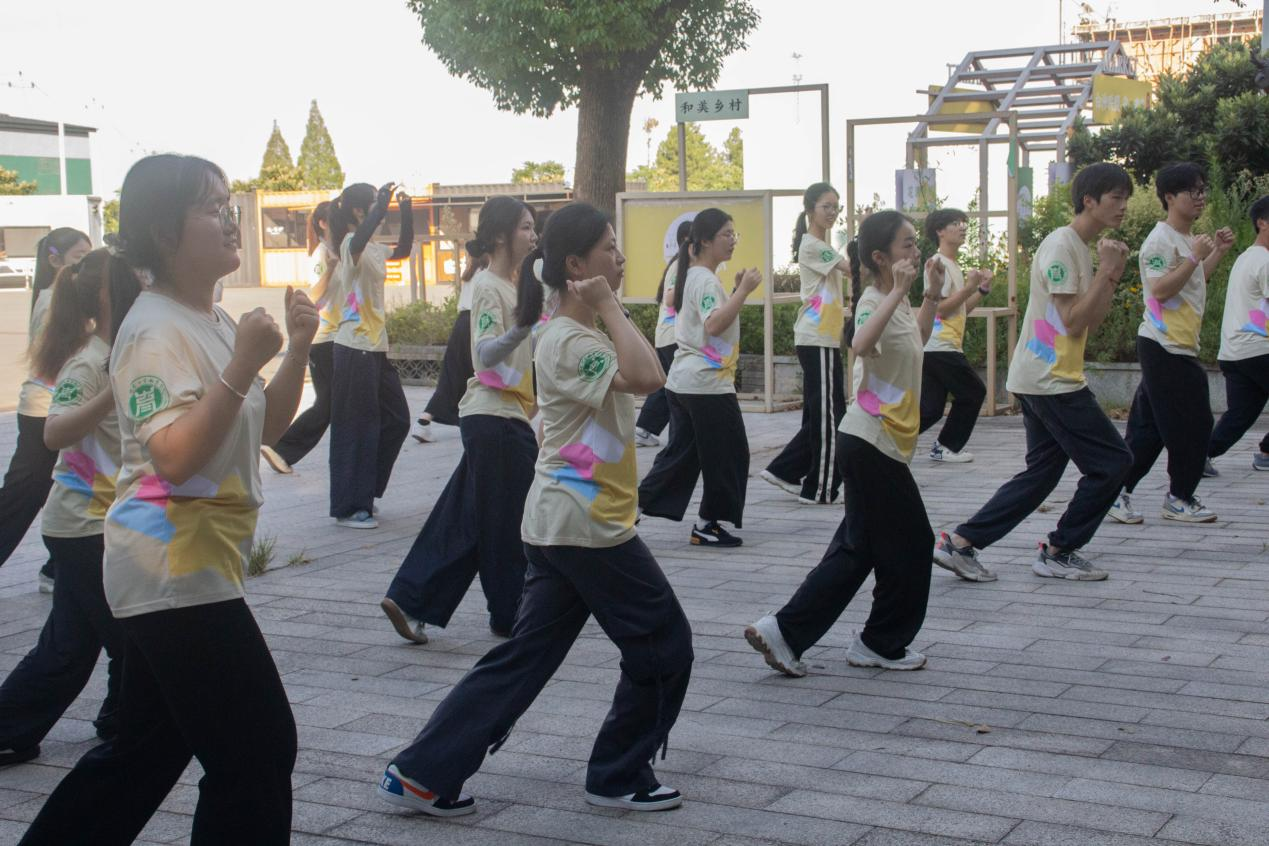 每天清晨和傍晚,大家练习太极拳、八段锦、中式养生操、消气操、五禽戏等养生操,或开启高效、愉快的一天,或放松身心、缓解一天的疲劳,从而以更好的状态参加各项实践活动。