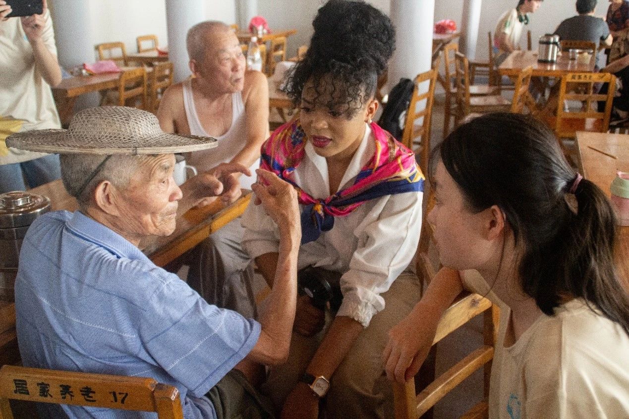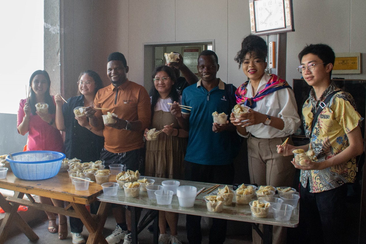实践队的中外学生一起将这份来自不同国家的温情传递给村里的老人们。屋内众人围坐一堂,聊着家常,包着饺子,其乐融融。期间,留学生们深入了解了康养文化,并对中国的“孝”文化有了新的感悟。