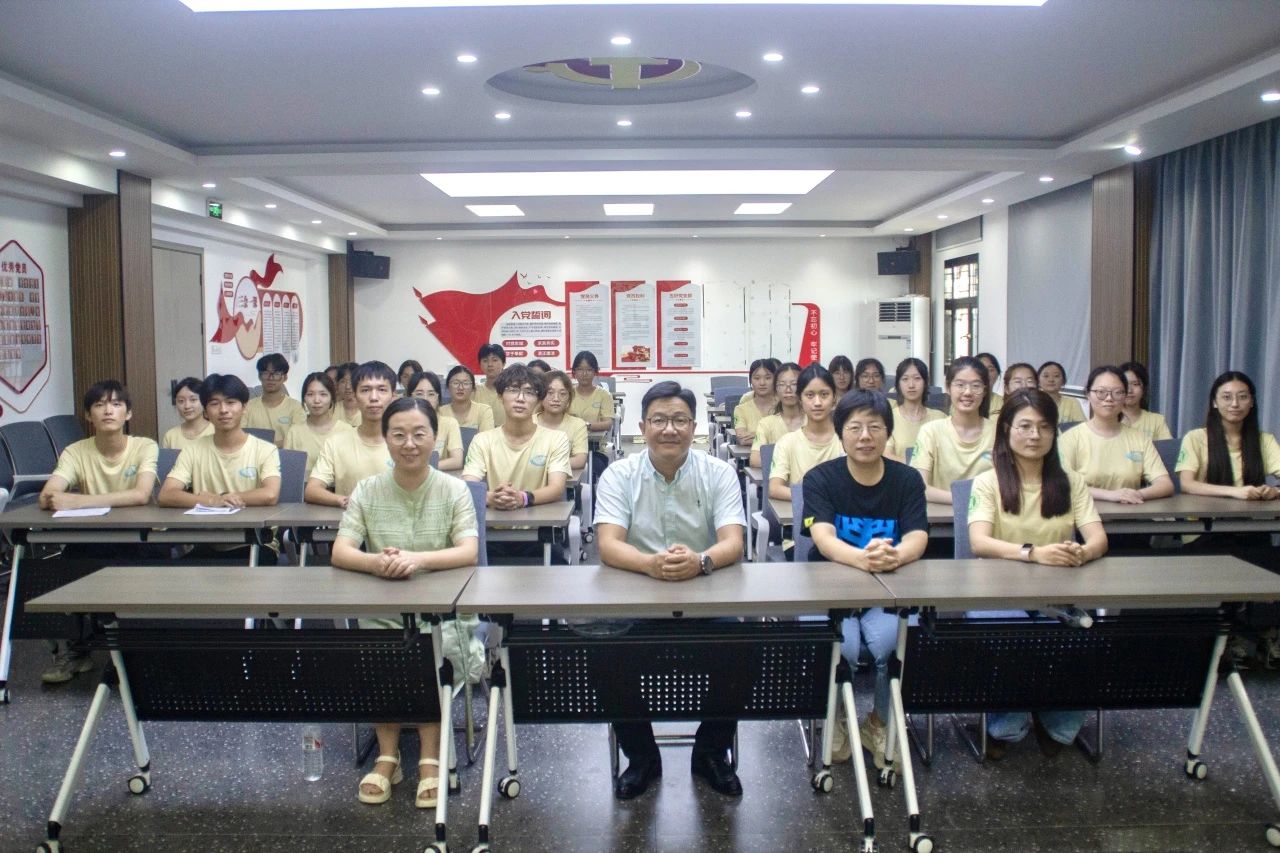 苏煜发表讲话,他充分肯定了实践队的前期工作成果,并对后续活动进行指导。第一,沉潜文化矿脉,铺展乡村蓝图。新昌桥村依托白沙溪三十六堰,具有浓厚的文化底蕴。实践队要深度发掘新昌桥村的历史文化脉络,谋求创新点,探索新路径,围绕当地“康养文化”特色,进行精准调研。第二,深植乡野课堂,浇灌理想之花。他希望队员们充分利用新昌桥村提供的丰富素材和良好条件,在帮助孩子们开阔视野、学习新知识和技能的同时,通过初为人师的体验进一步坚定教育理想,厚植教育情怀。第三,铭记安全首位,践行节俭良俗。他提醒队员们,安全无小事,责任重如山,同时要对村里心怀感恩,以自己的身体力行、率先垂范,弘扬勤俭节约之风。