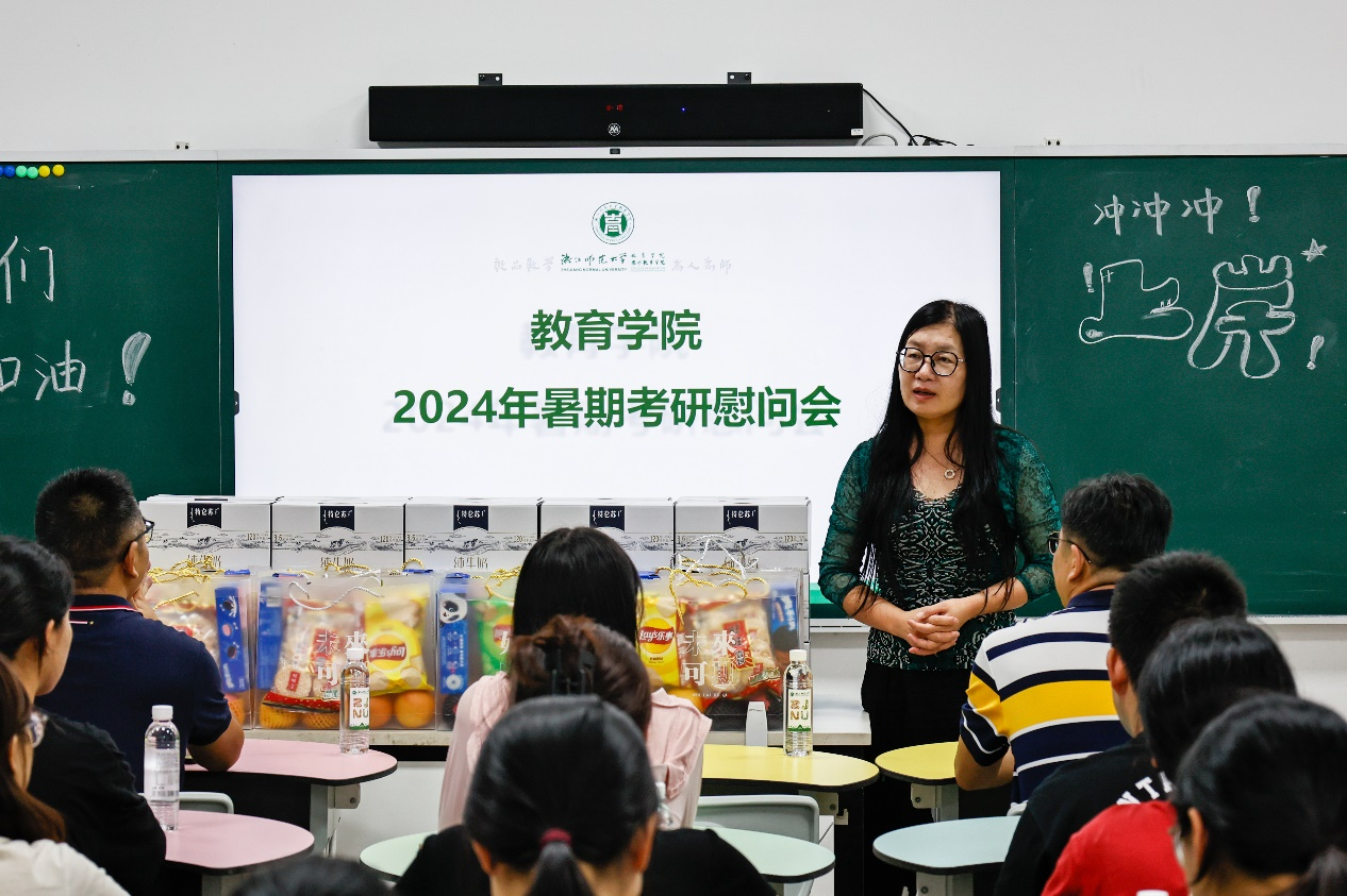 为进一步鼓舞考研学子士气,帮助他们缓解压力、坚定信心,7月31日上午,教育学院于17幢112教室召开2024年暑期考研慰问会。学院院长黄晓、党委书记苏煜、党委副书记王玉琴、副院长王良辉、团委书记兼学工办主任叶青、辅导员蔡鑫等出席了会议,对留校备考的学子进行慰问。
