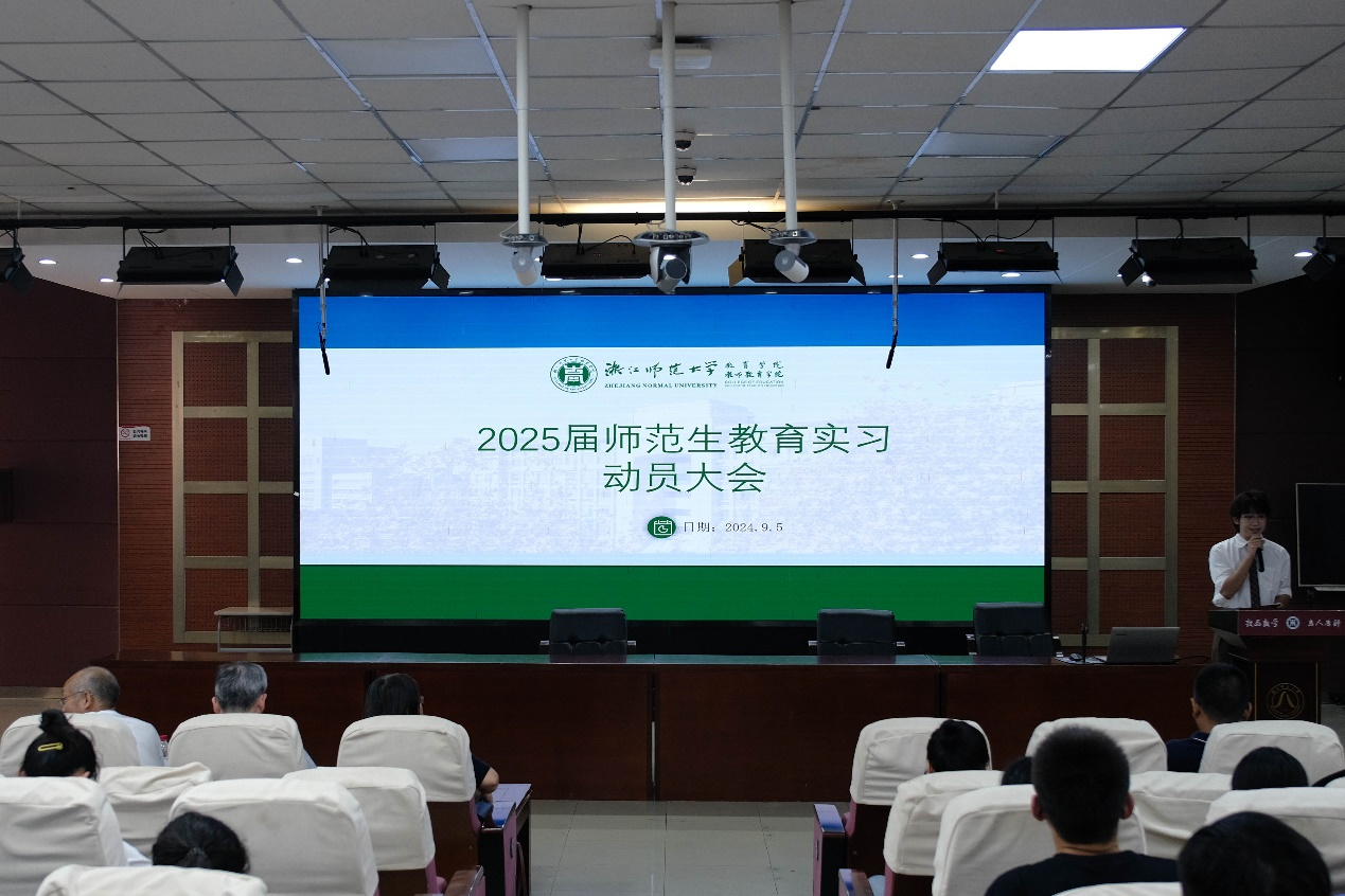 9月5日下午,教育学院2025届师范生教育实习动员大会于17幢112报告厅顺利召开。教育学院副院长王良辉、党委副书记王玉琴、教育系主任周晓燕、教育技术系主任王小明、教务办副主任黄璐、年级辅导员蔡鑫、各实习指导教师及2025届全体师范生参加了本次大会。
