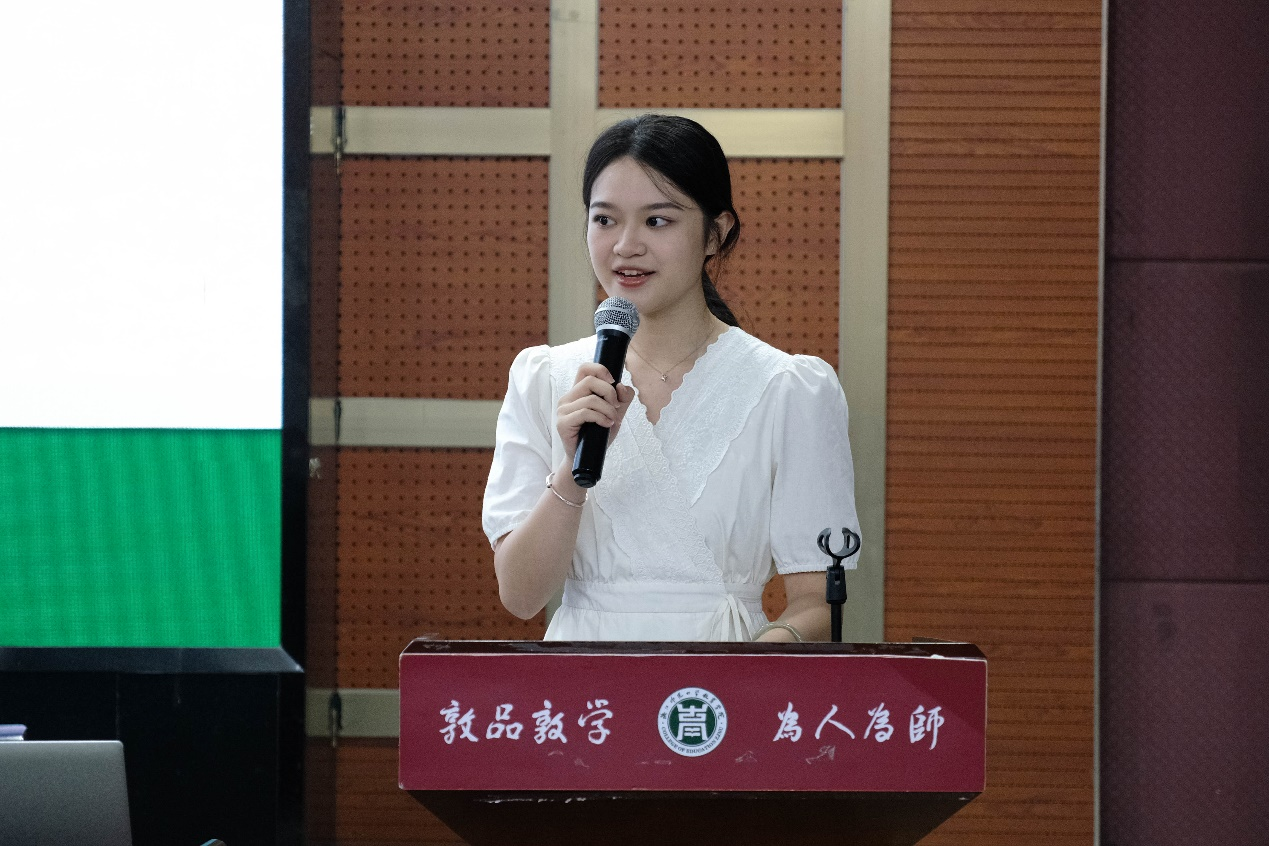 小学教育212班徐雅莹作为实习生代表发言,她号召同学们全身心地投入到实习锻炼中,不断摸索教育风格、涵养教育素养,用实际行动展示自己的决心和信心,圆满完成教育实习活动。