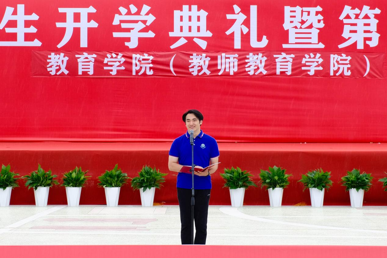 黄晓院长代表学院全体师生,欢迎各位新“教育人”的到来。她从师资力量、人才培养、教研底蕴和国际化工作四个方面介绍学院的基本情况,并对新生们提出了三点希望和要求:一要心怀梦想、仰望星空;二要脚踏实地、稳步前行;三要强健体魄、健康身心。最后,她鼓励同学们在全新的起点上,打开视野,敞开心扉,放开手脚,心无旁骛,勇敢追梦。