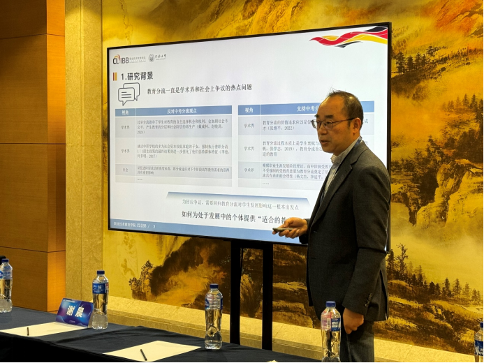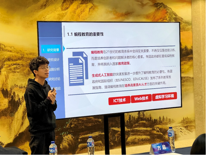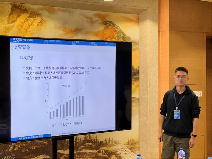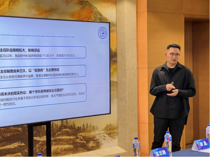 上半场报告由王占军教授主持。来自华东师范大学的王成梁同学以“MetaClassroom:建构编程教育的新样态”为题,探讨了如何通过虚拟课堂创新编程教育模式,强调了三维学习进阶(3DLP)理论在构建个性化学习体验中的作用。接下来,北京大学的于磊同学带来了“地方人才引进政策对家庭教育投资的影响”的报告,研究表明,地方人才引进政策显著增加了家庭在义务教育阶段的校外教育支出,尤其是在校外补习方面。扬州大学的刘鑫同学分享了“混龄教育中绘本教学对中班幼儿语言发展的研究”,分析了混龄教学对幼儿表达性语言能力的积极影响,特别是在“大带小”模式中表现明显。北京大学的郑翔睿同学通过一项随机干预实验,探讨了分数激励和减少评教题目数量在提升学生评教参与率方面的作用,发现分数激励效果更显著。浙江大学的陈加铿同学报告了高校职务科技成果赋权改革对新质生产力的推动作用,通过准自然实验数据表明,赋权改革显著促进了高校科技成果的有效转化。北京师范大学的崔馥千同学以“内卷”与“剧场效应”为主题,研究了大学生在学业和职业选择中的竞争心理,揭示了“内卷”现象对学生内部动机的消极影响。华中师范大学的朱楠老师介绍了针对小学数学学习困难儿童的“认知策略教学”干预策略,通过“Solve It!”认知策略有效提升了这些学生在数学问题解决方面的表现。吉林大学的王天骄老师探讨了班主任的学科背景对学生学业表现的影响,发现英语和数学教师担任班主任时对学困生成绩和班级氛围的提升更为显著。上半场的最后一位发言人是同济大学的王奕俊老师,他分析了延迟中考分流的教育效应,研究表明,适当延迟分流时间有助于学生的学业表现提升。
